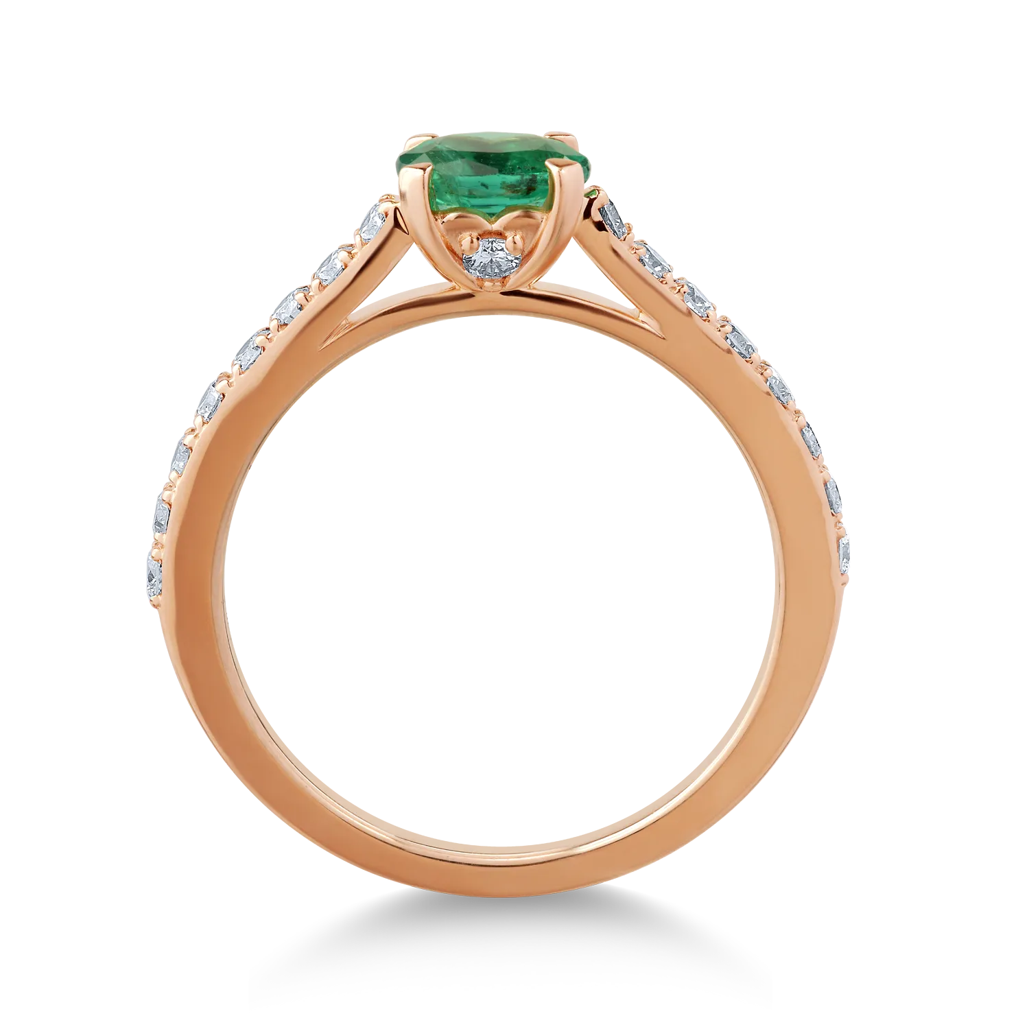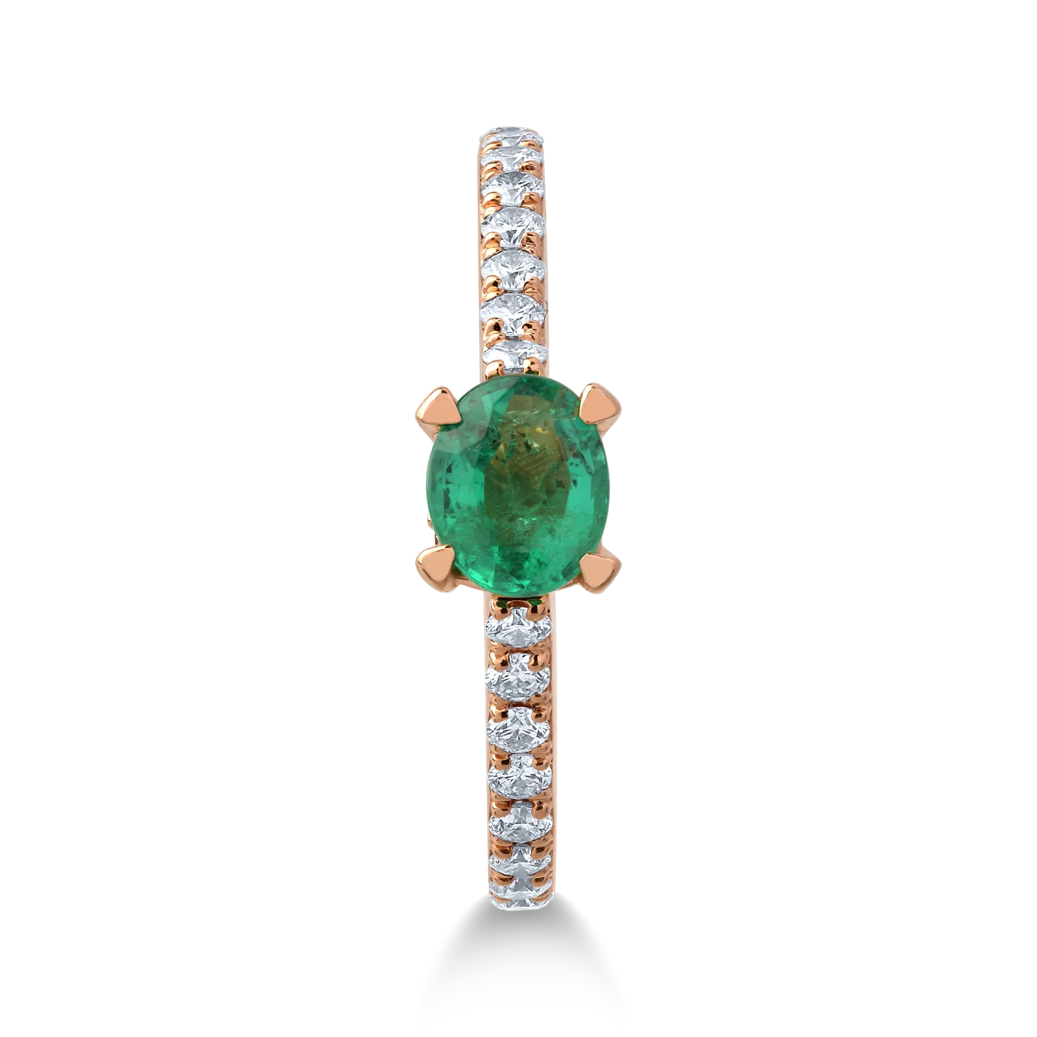 Inel din aur roz cu smarald oval de 0.5ct si diamante de 0.3ct