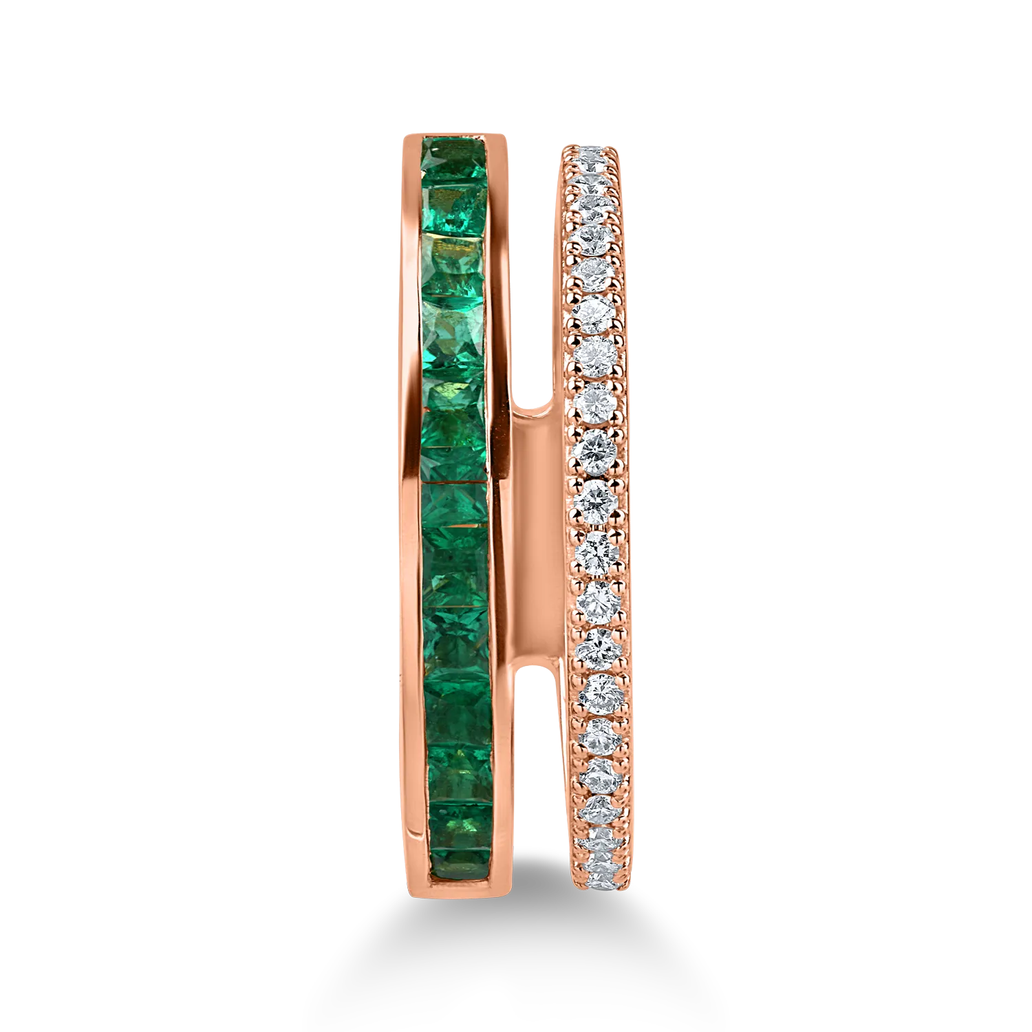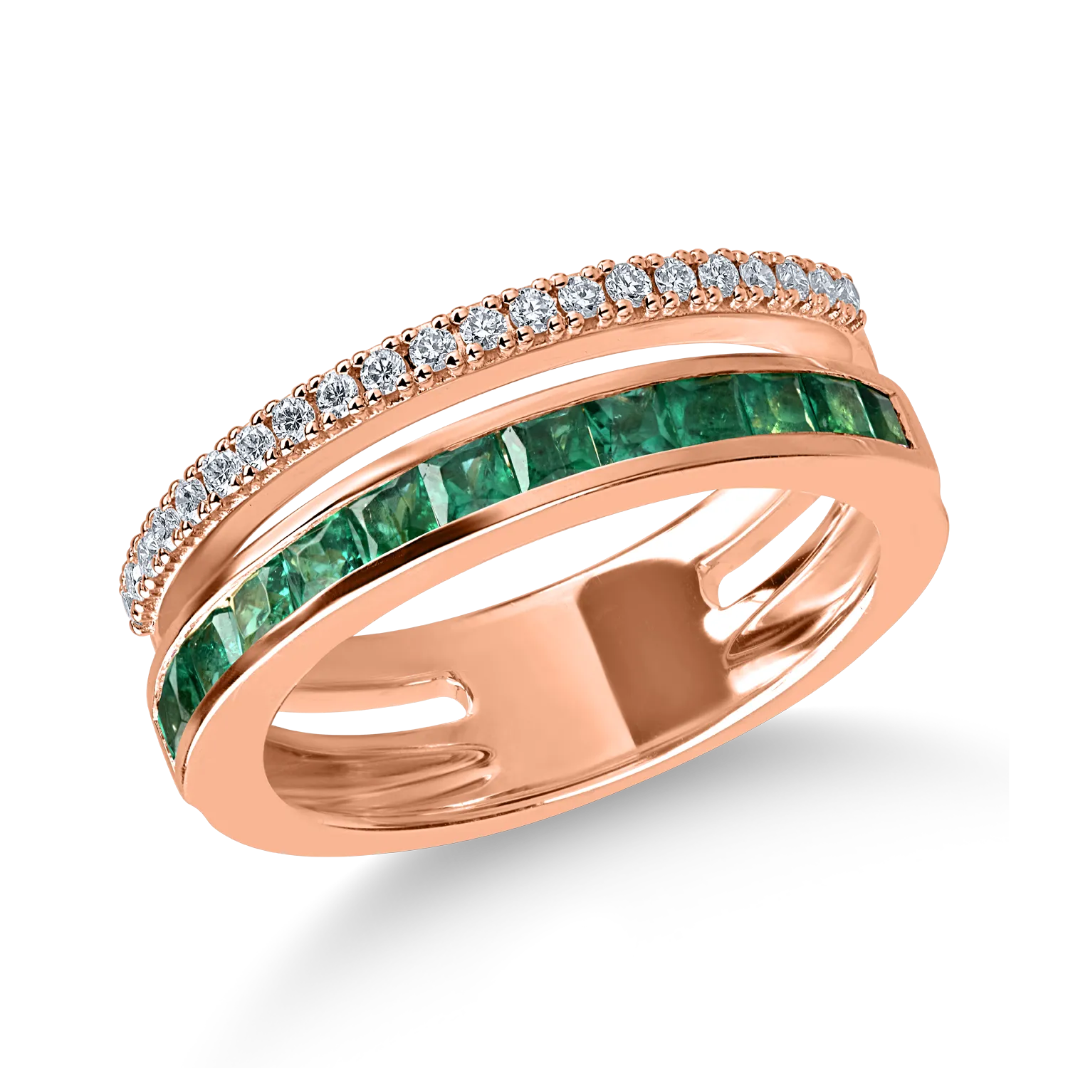 Inel din aur roz cu smaralde princess de 0.6ct si diamante de 0.16ct