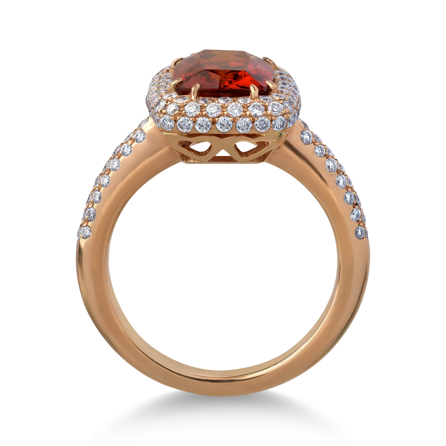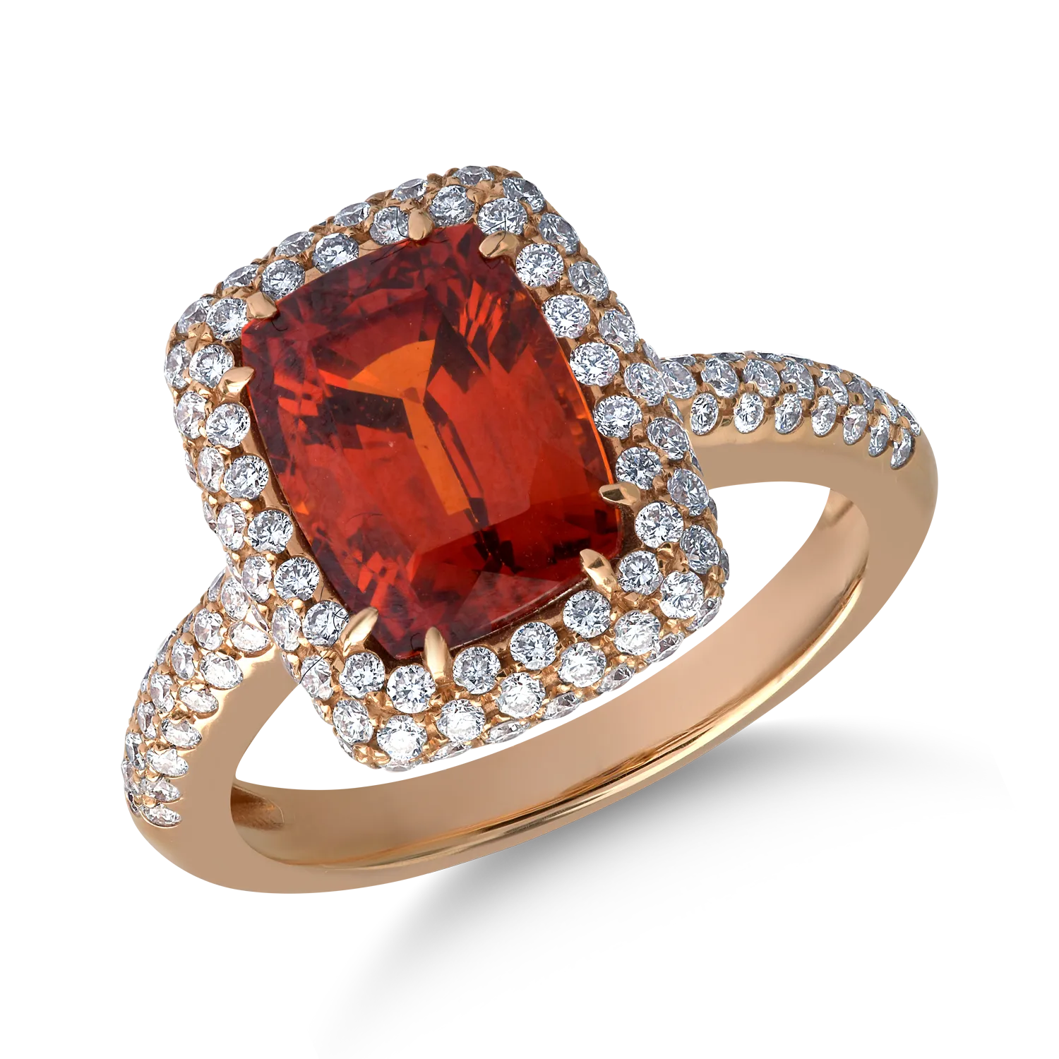 Inel din aur roz cu spessartit rectangular de 4.2ct si diamante de 0.8ct