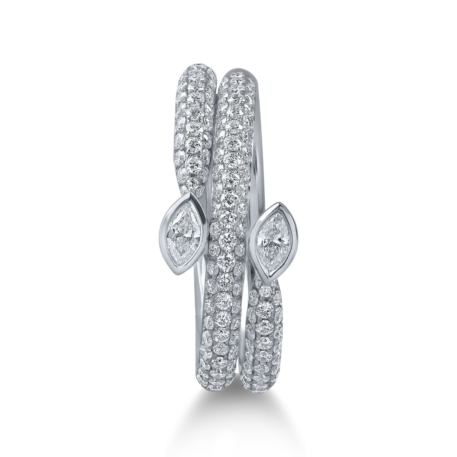 Feminitatea capata noi forme de expresie. Descopera acest inel dublu din aur alb cu diamante de 1.07ct in care vei regasi elementele unui design rafinat si modern. Alege perfectiunea cu TEILOR, o lume in care cream povesti memorabile impreuna cu tine.