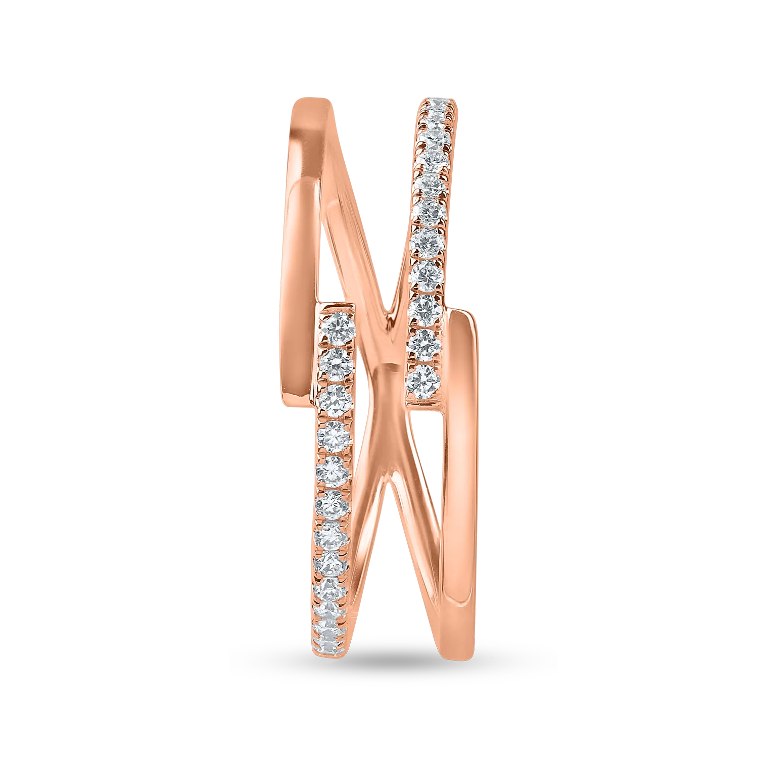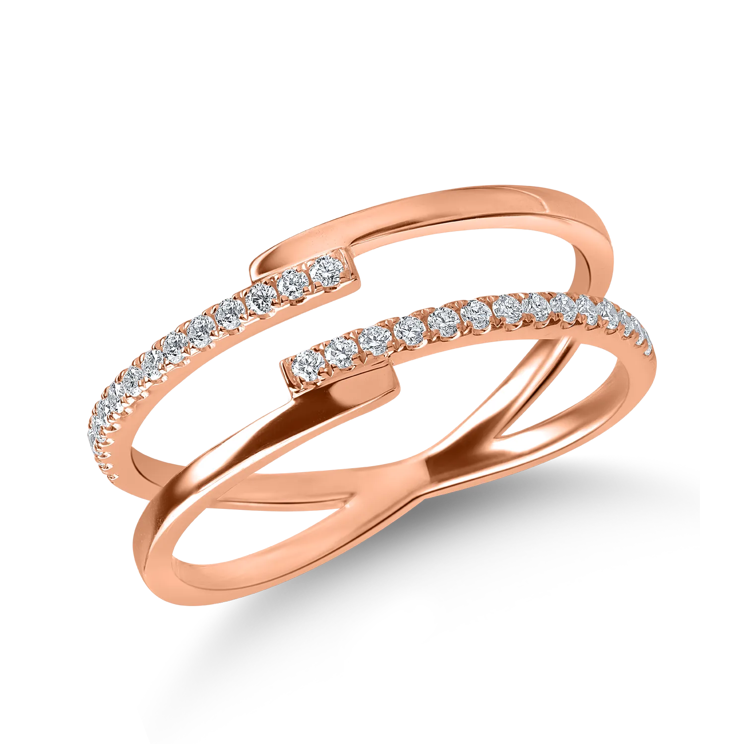 Inel dublu din aur roz cu diamante microsetting de 0.1ct
