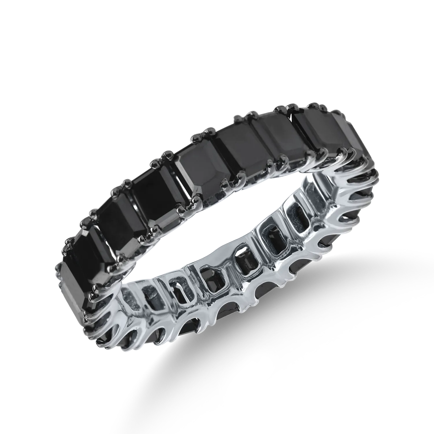 Inel eternity din aur alb cu diamante negre emerald de 4.9ct