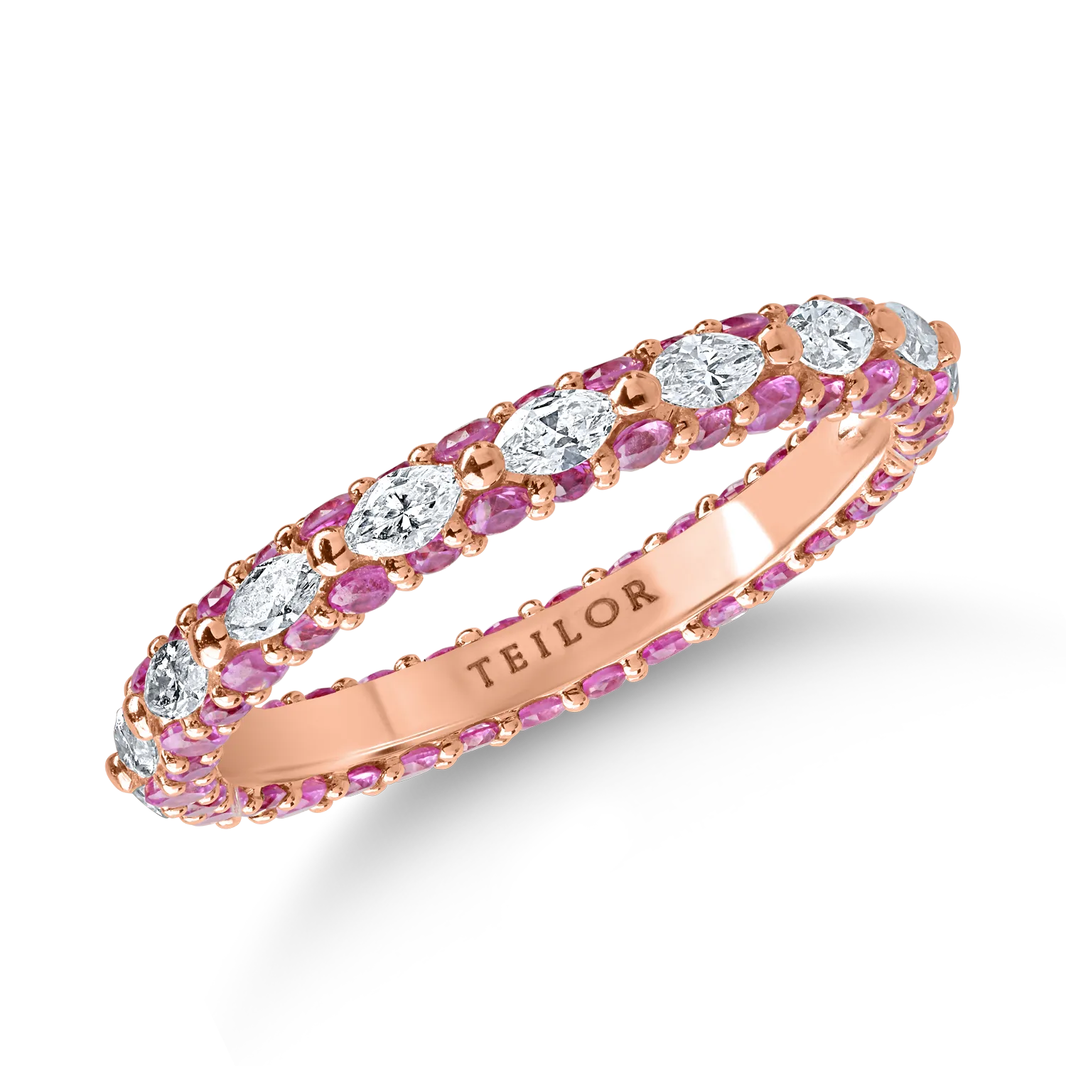 Inel eternity din aur roz cu diamante de 0.6ct si safire roz de 1.3ct