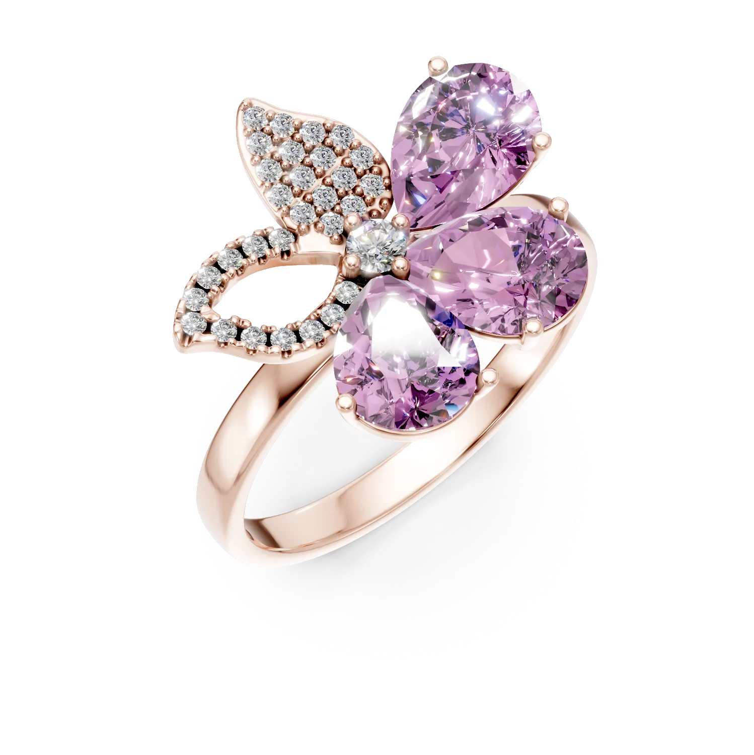 Inel floare din aur roz cu ametiste pear de 3.3ct si diamante de 0.2ct