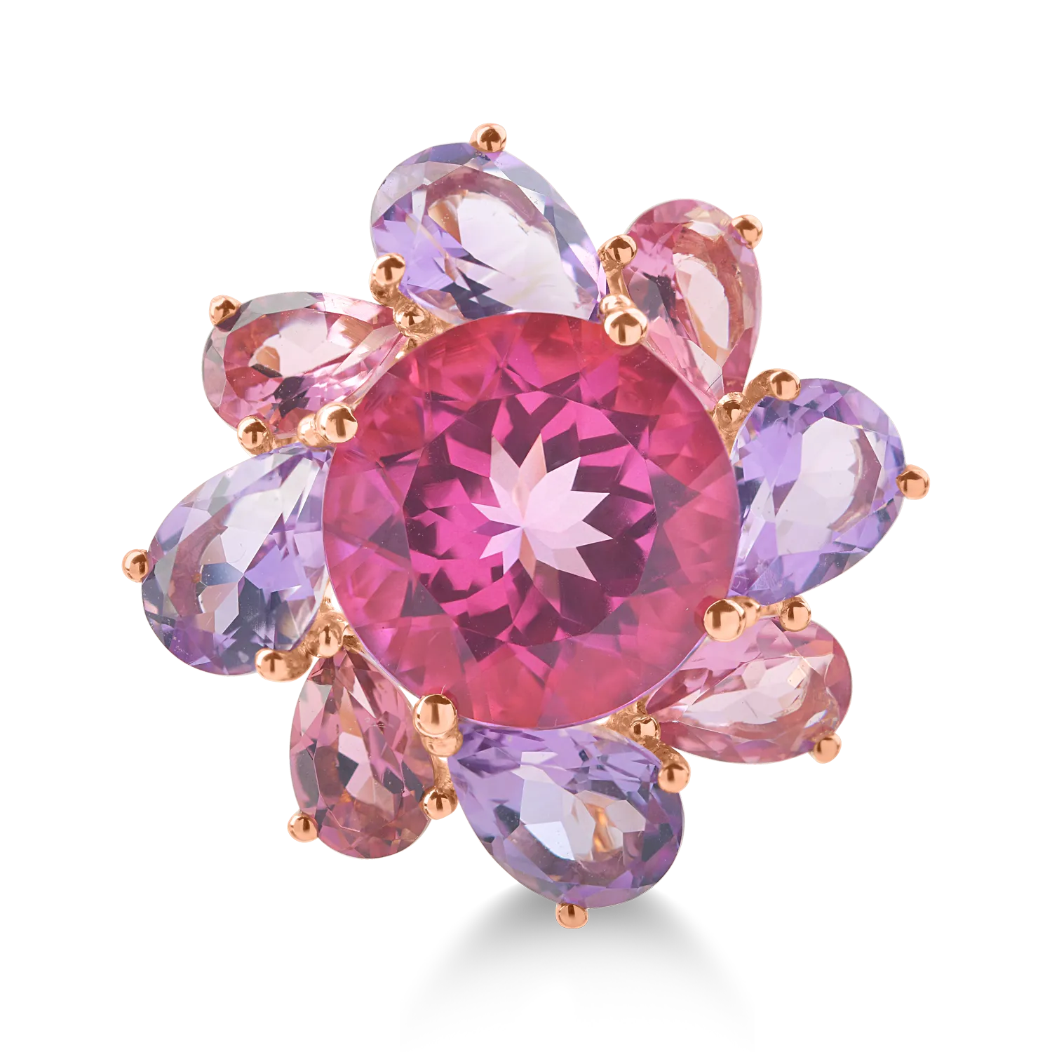 Inel floare din aur roz cu pietre semipretioase de 10.7ct