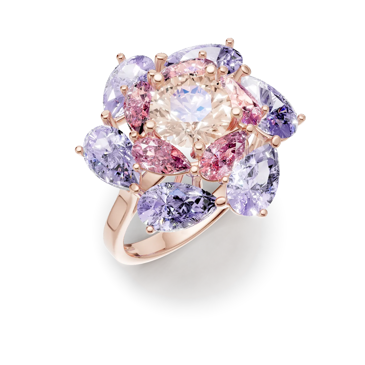 Inel floare din aur roz cu pietre semipretioase de 5.7ct