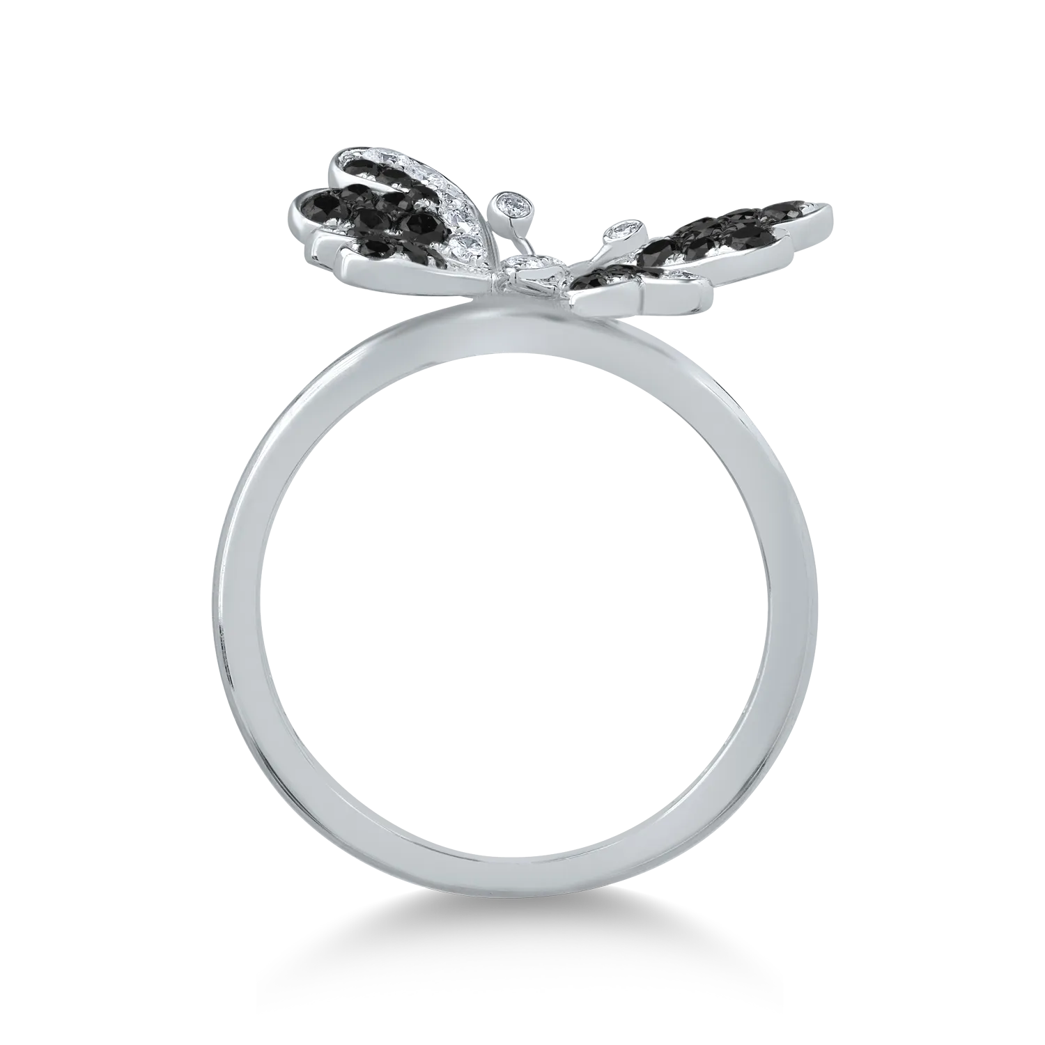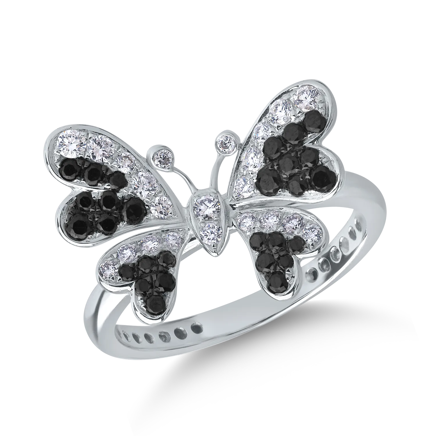 Inel fluture din aur alb cu diamante negre de 0.33ct si diamante transparente de 0.25ct