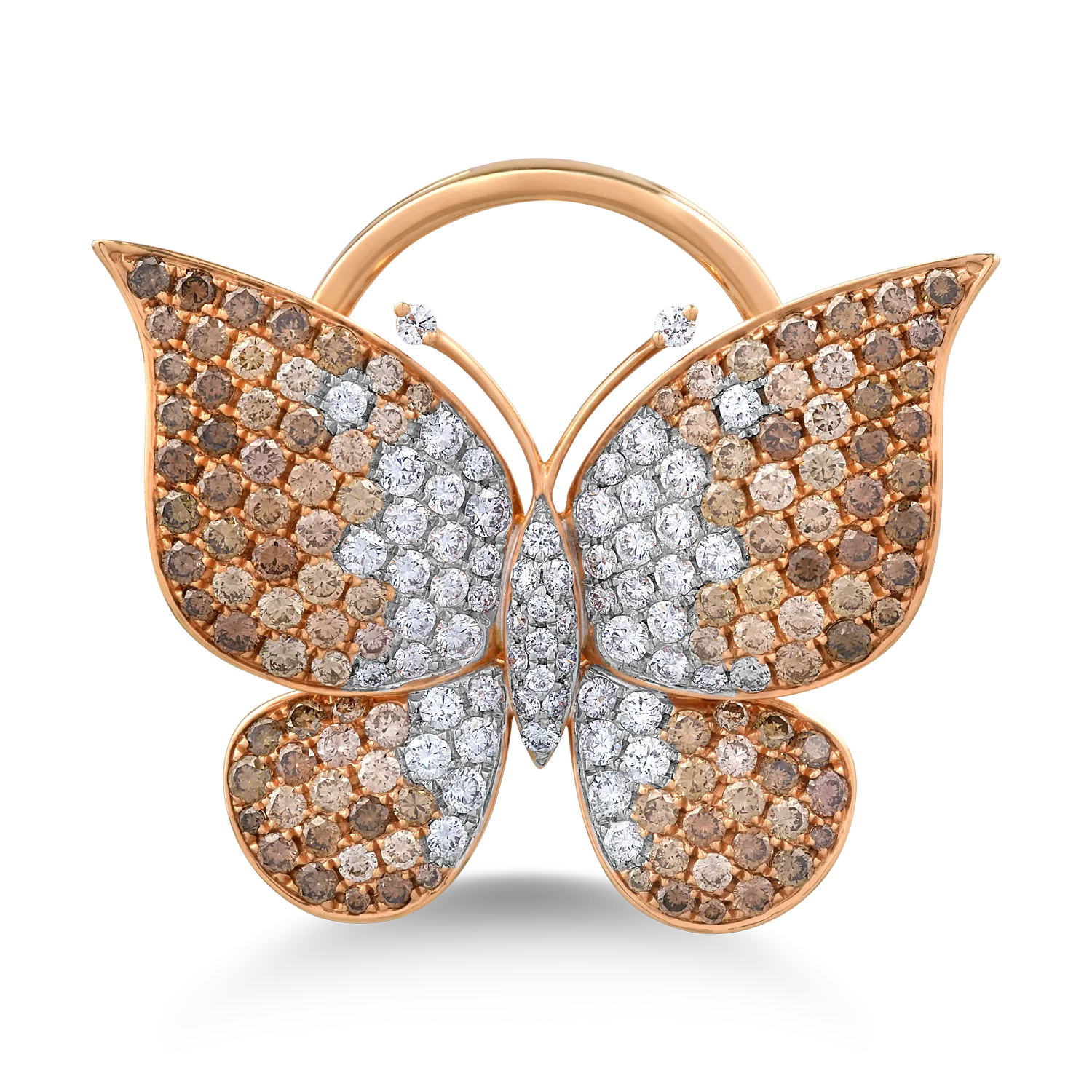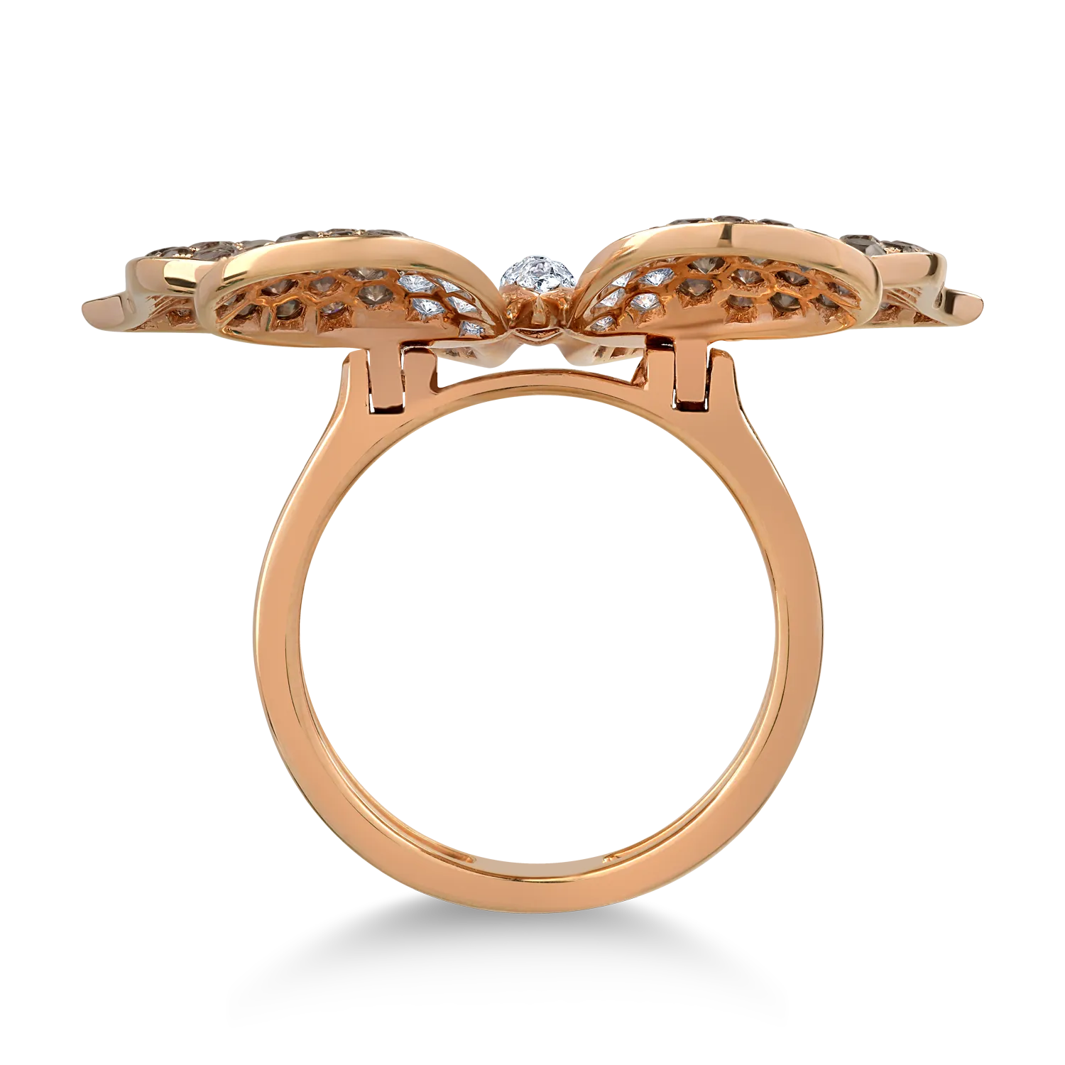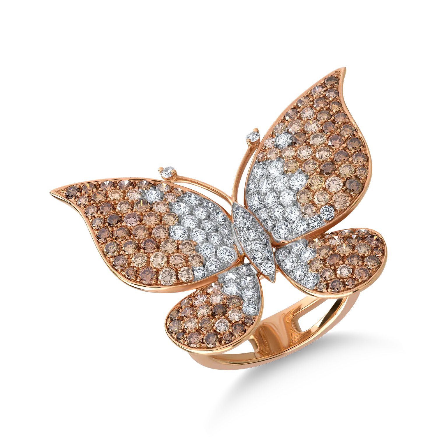 Inel fluture din aur roz cu diamante maro de 2.3ct si diamante transparente de 0.98ct