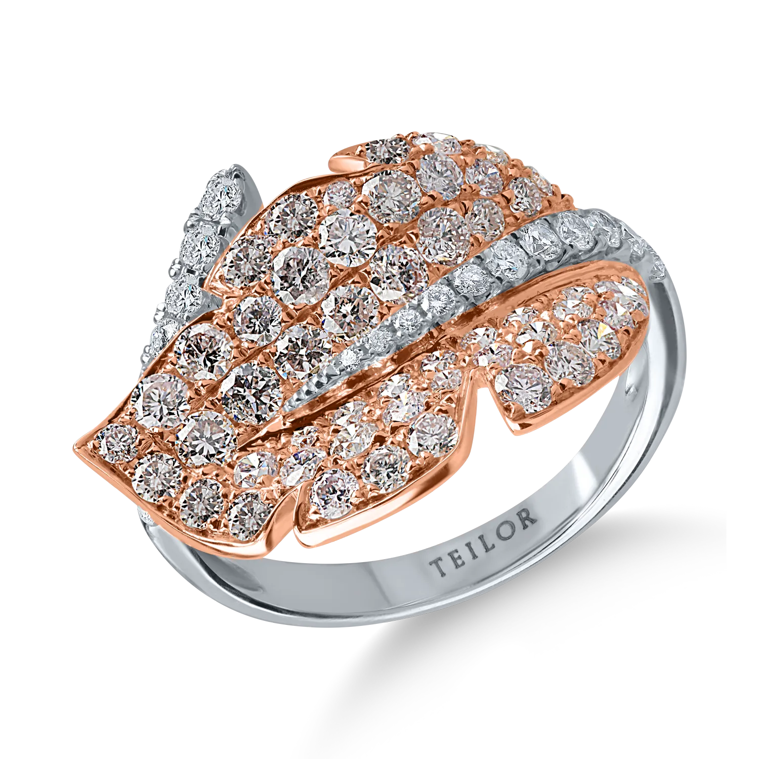 Inel frunza din aur alb-roz cu diamante roz si incolore de 1.69ct