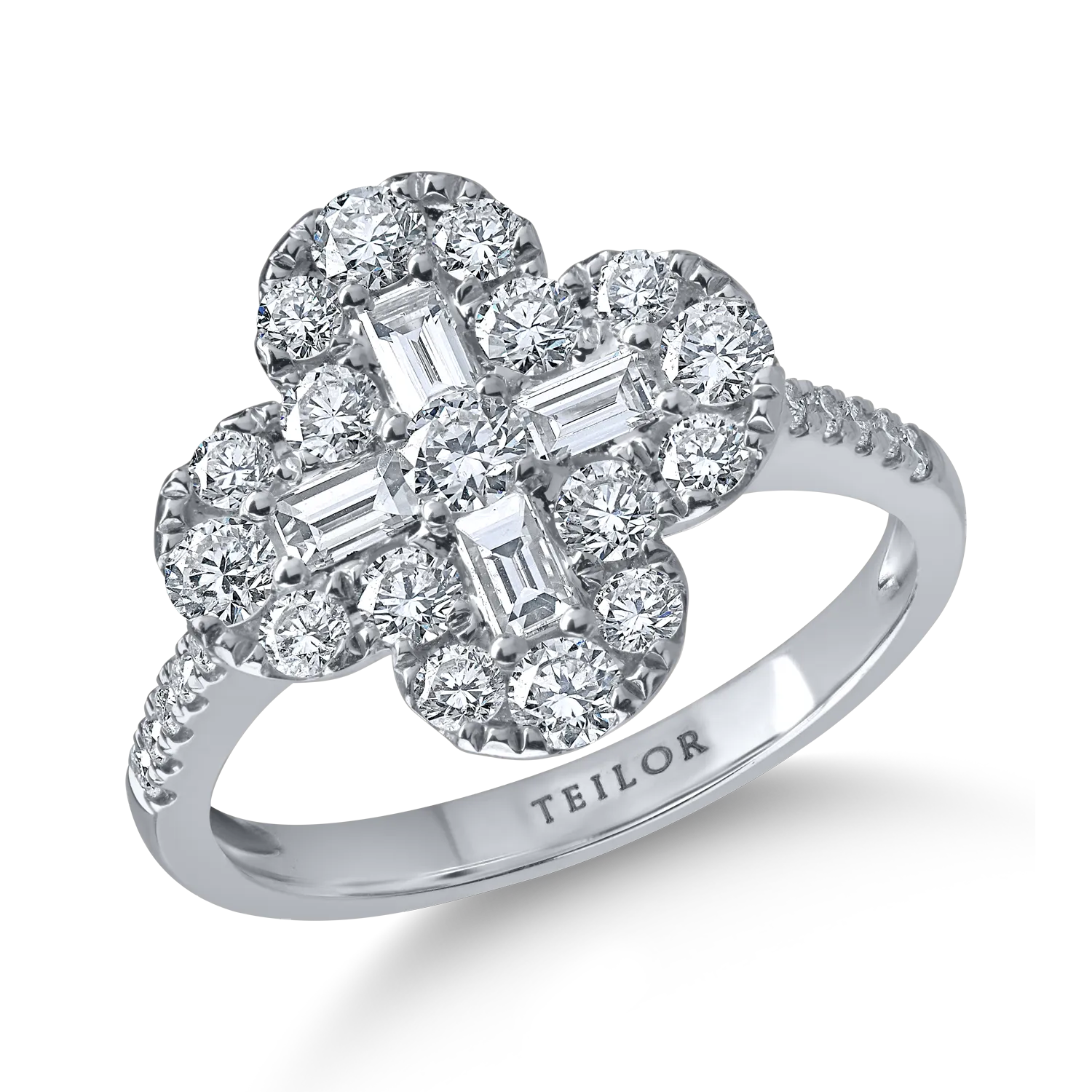 Inel geometric din aur alb cu diamante baguette si rotunde de 1.3ct
