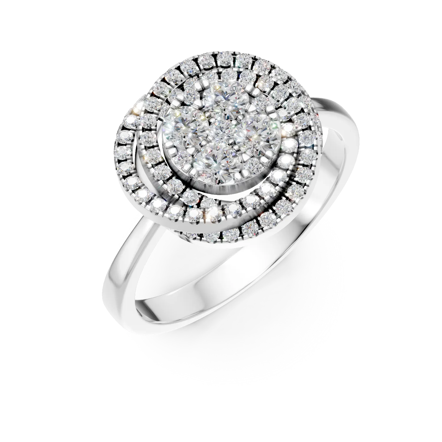 Linii expresive si straluciri captivante. O bijuterie statement, creata sa adauge rafinament oricarei tinute: inelul geometric din aur alb cu diamante de 0.6ct. TEILOR – esenta elegantei.