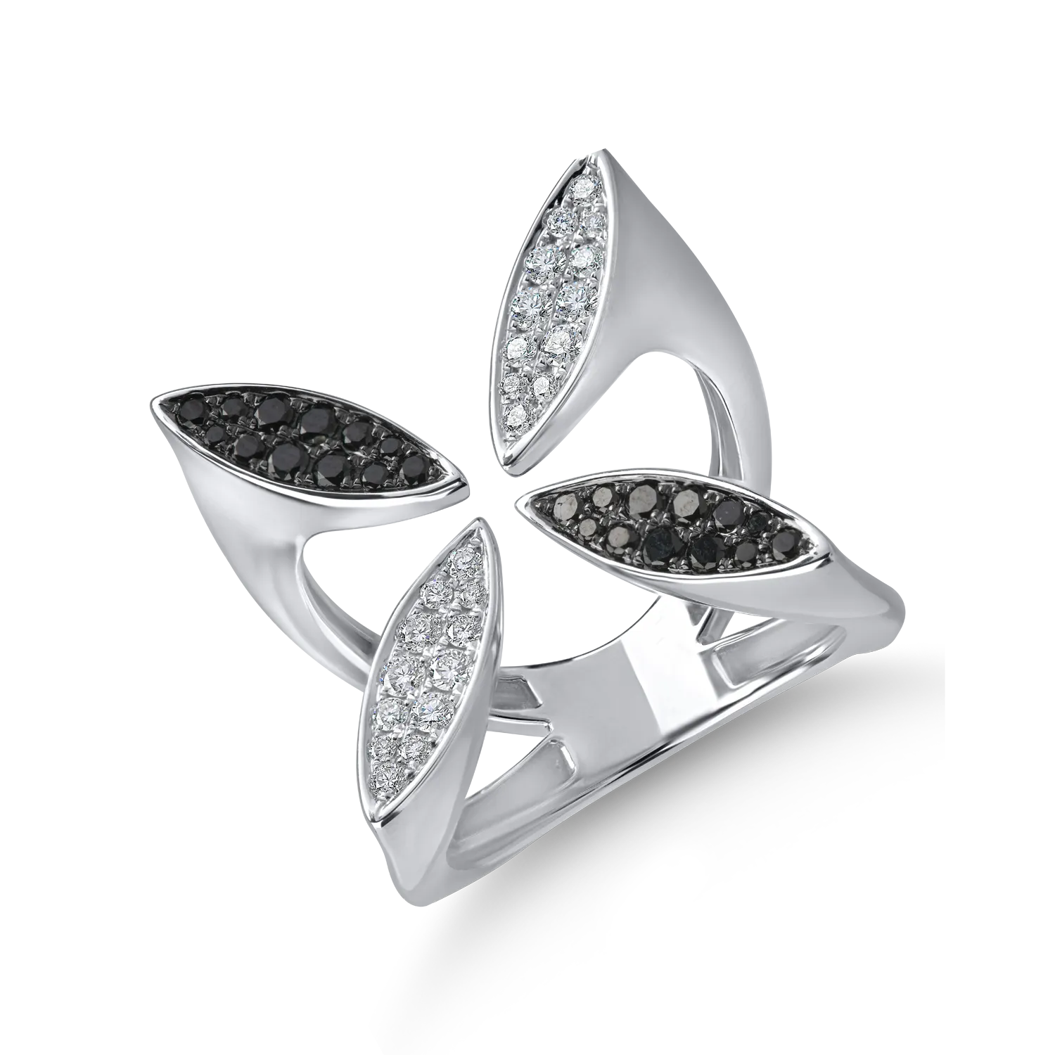 Inel geometric din aur alb cu diamante de 0.6ct