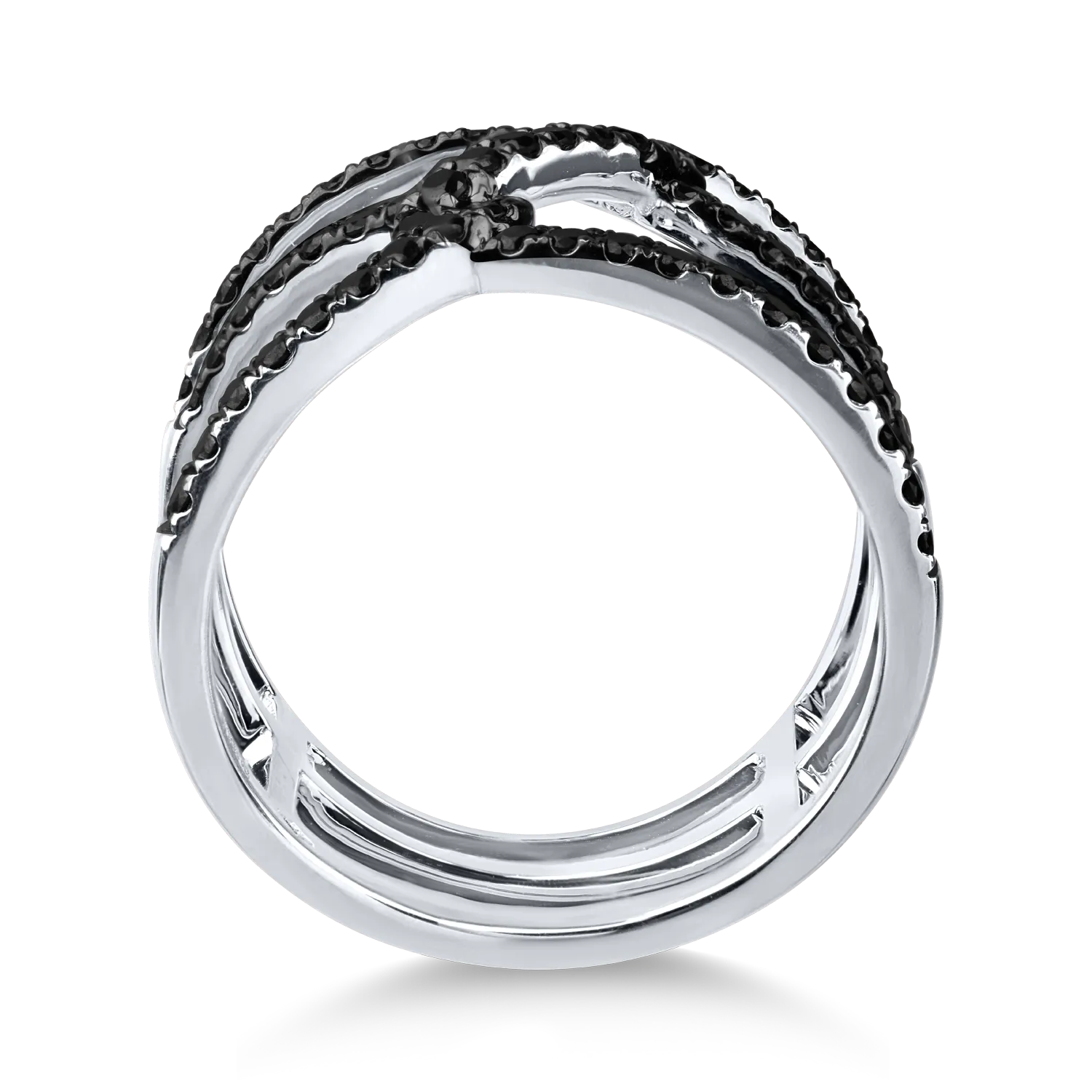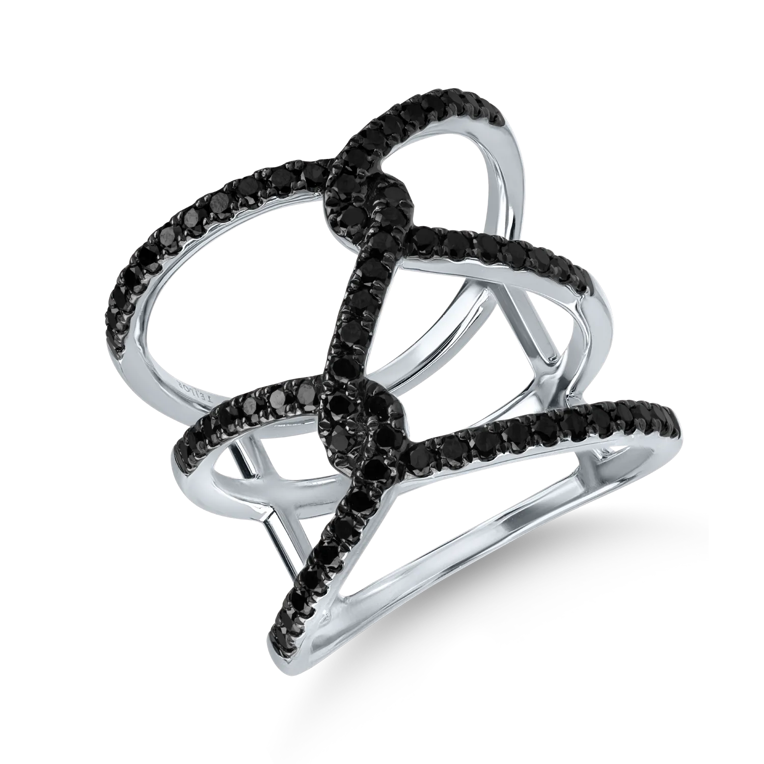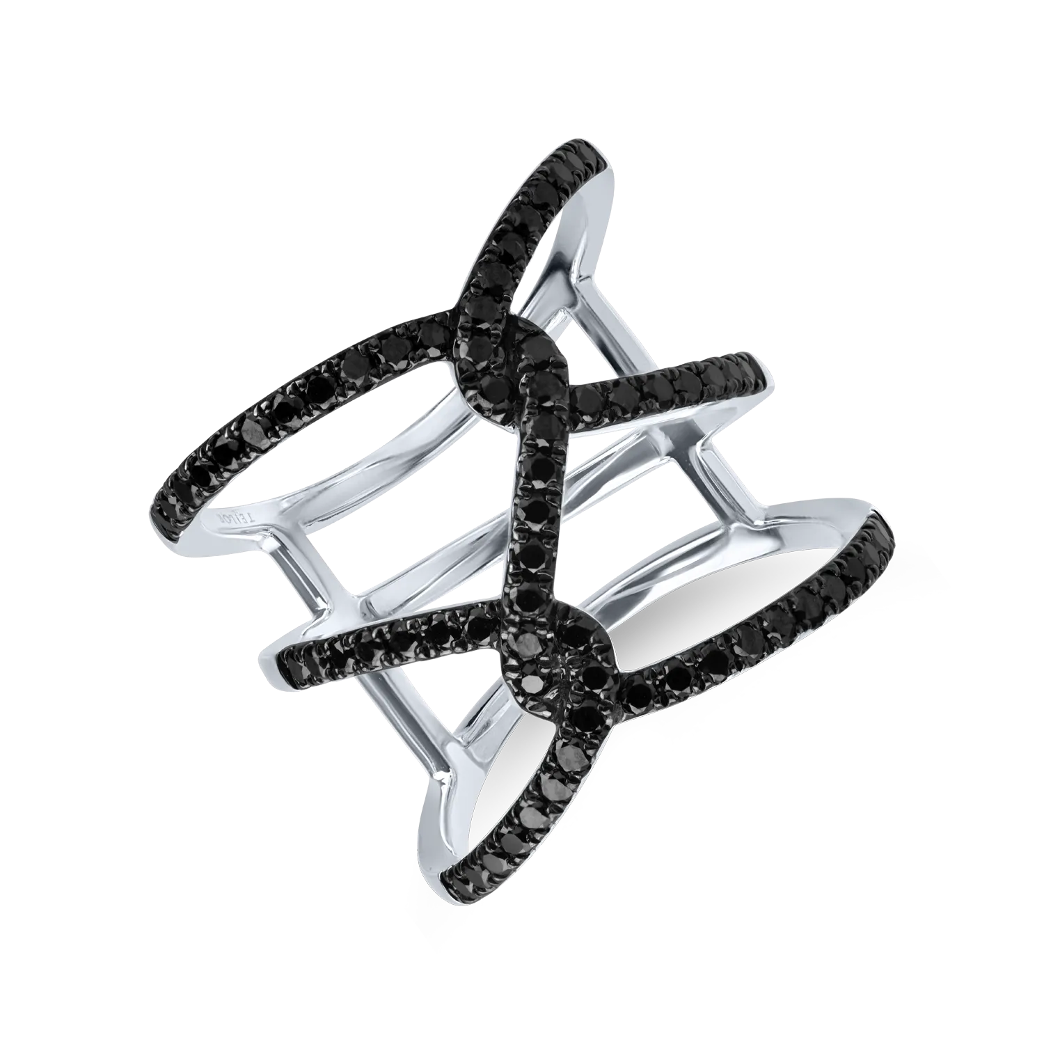Inel geometric din aur alb cu diamante negre microsetting de 0.7ct