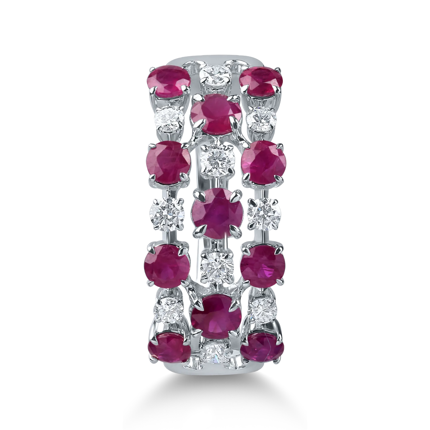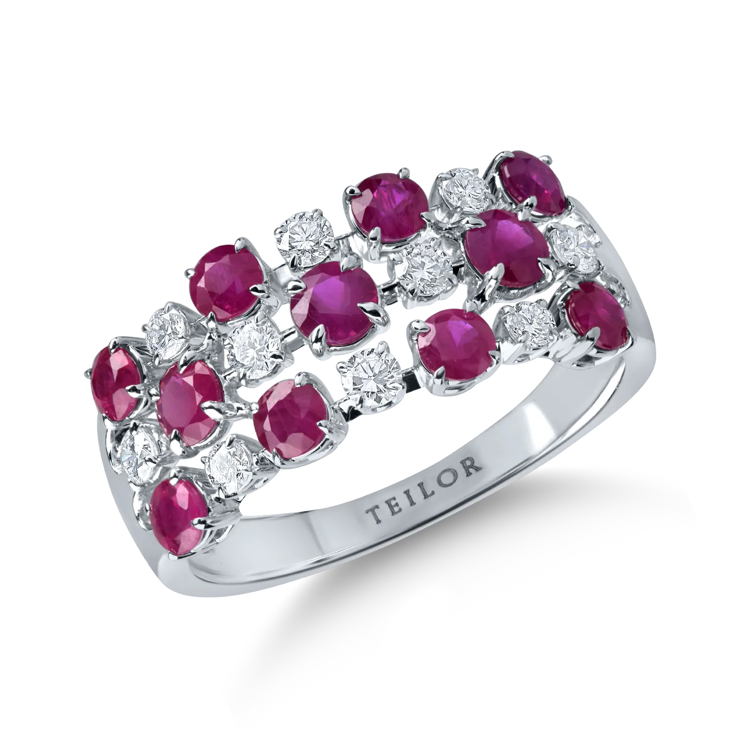 Inel geometric din aur alb cu rubine de 1.4ct si diamante de 0.3ct