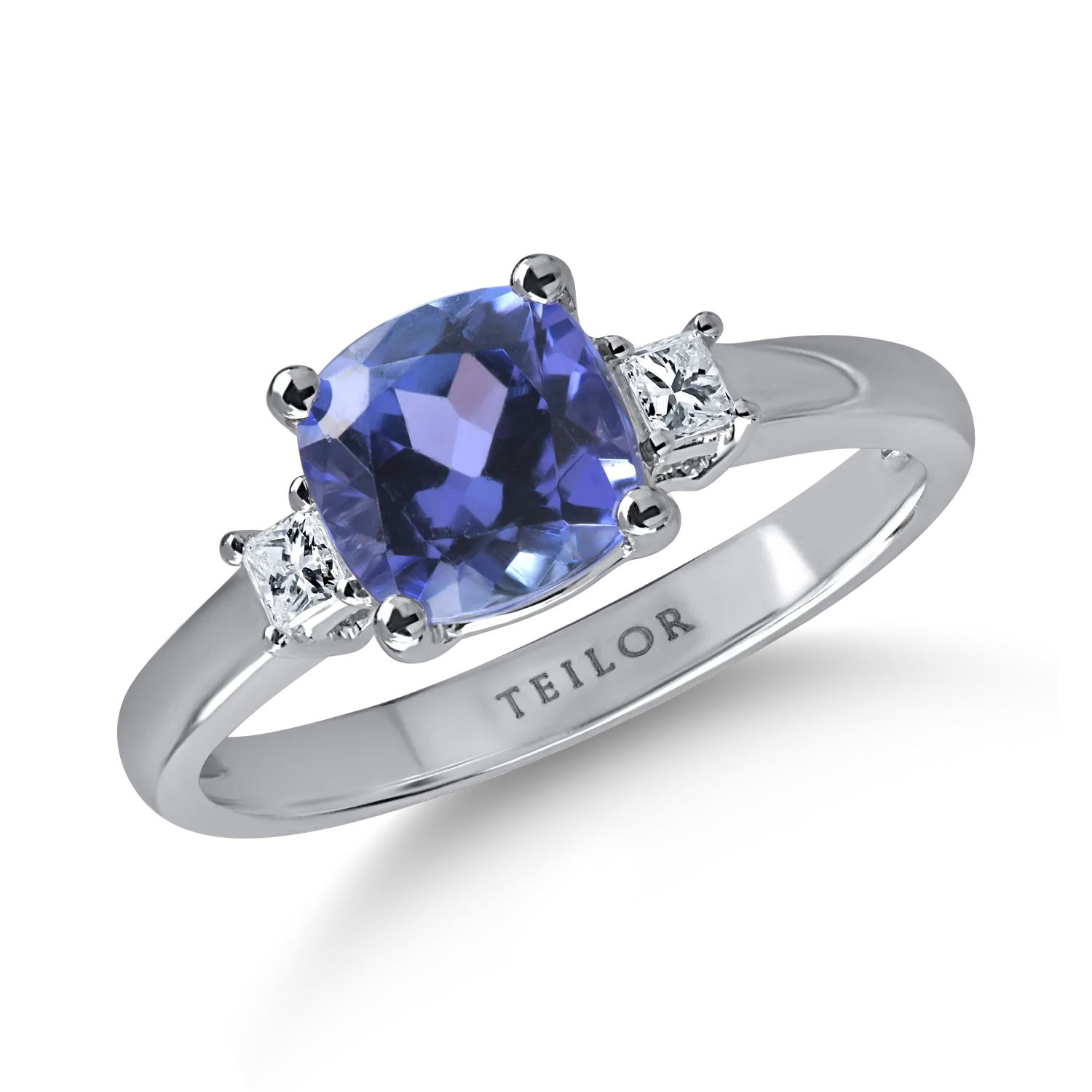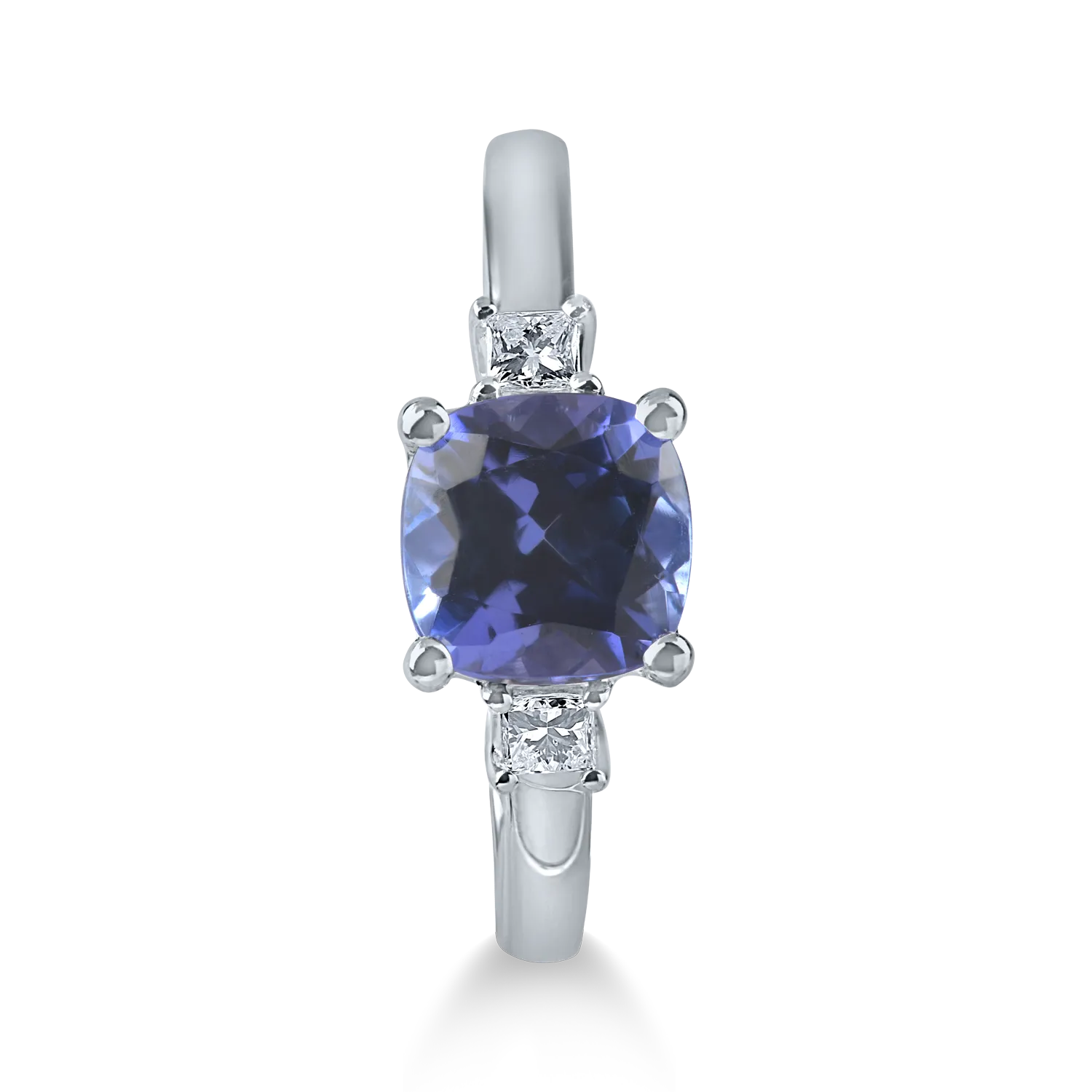Inel geometric din aur alb cu tanzanit cushion de 1.6ct si diamante de 0.1ct