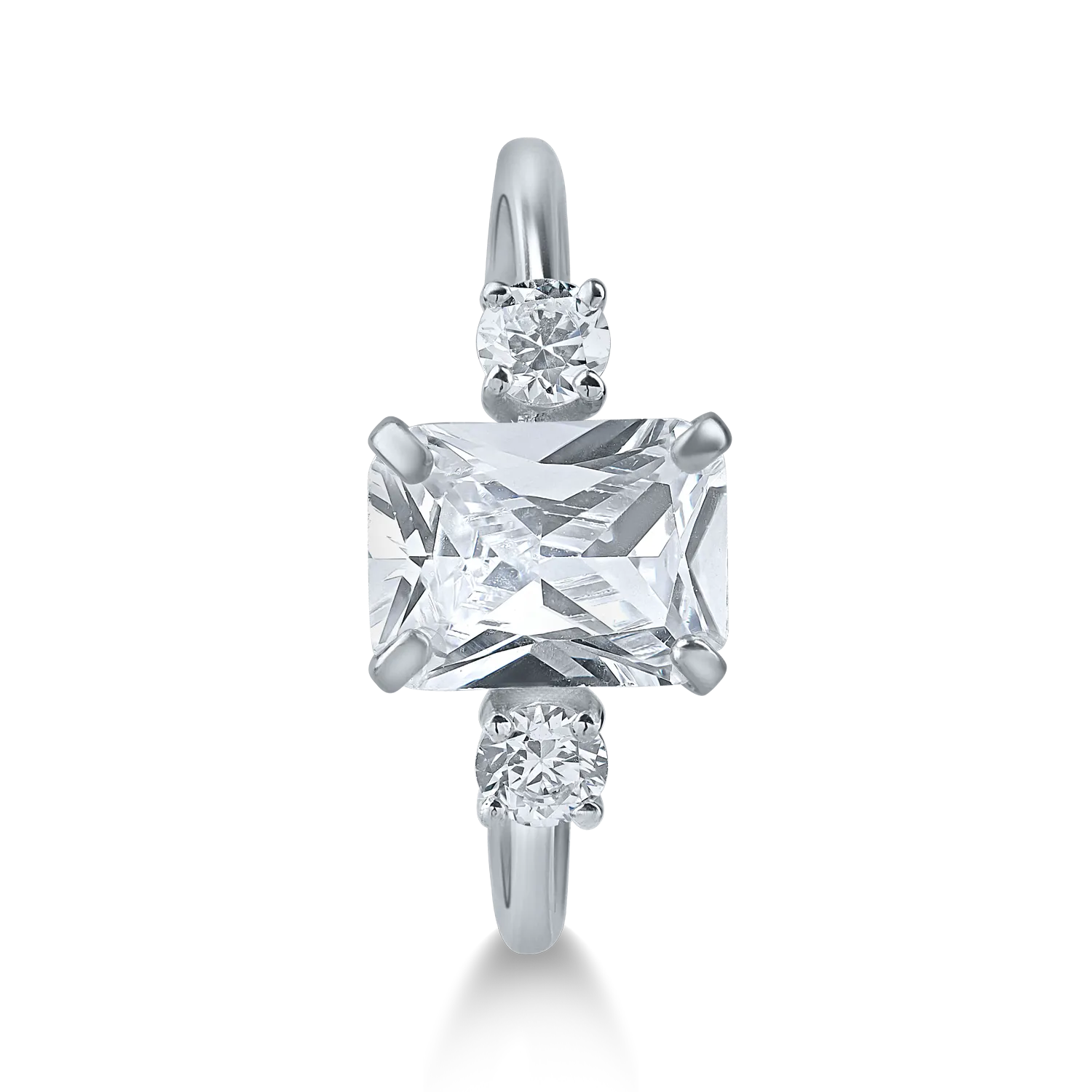 Inel geometric din aur alb cu zirconia