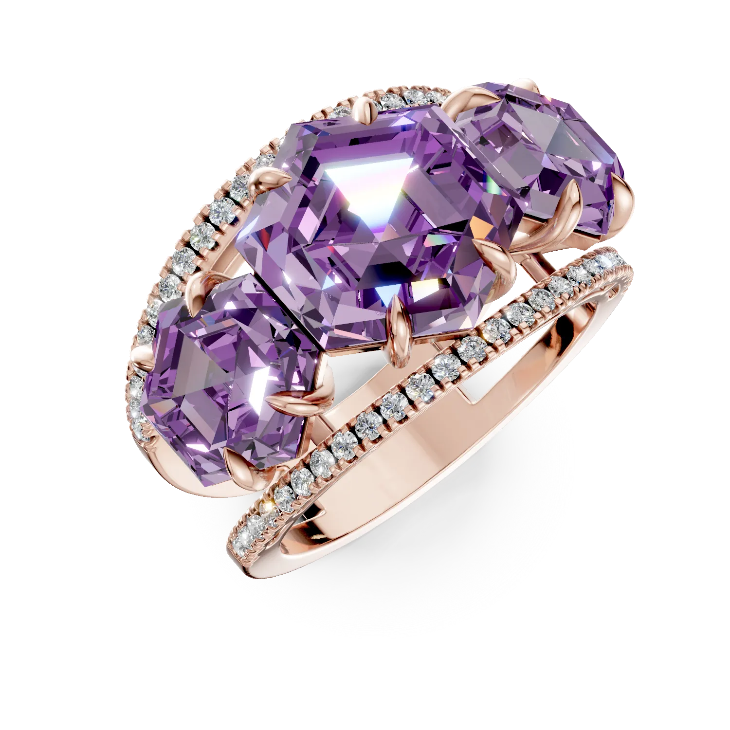 Inel geometric din aur roz cu ametiste hexagonale de 4.4ct si diamante de 0.3ct