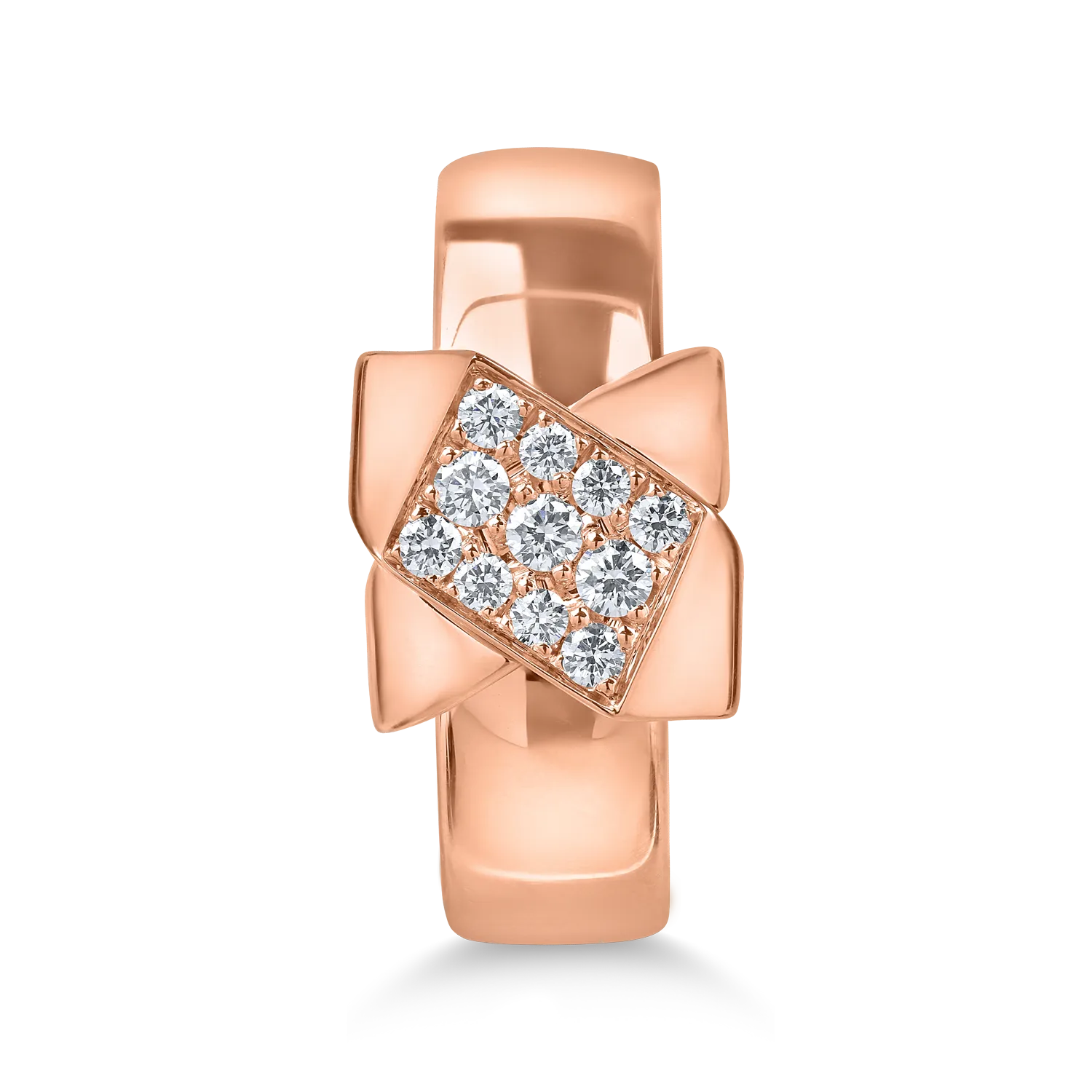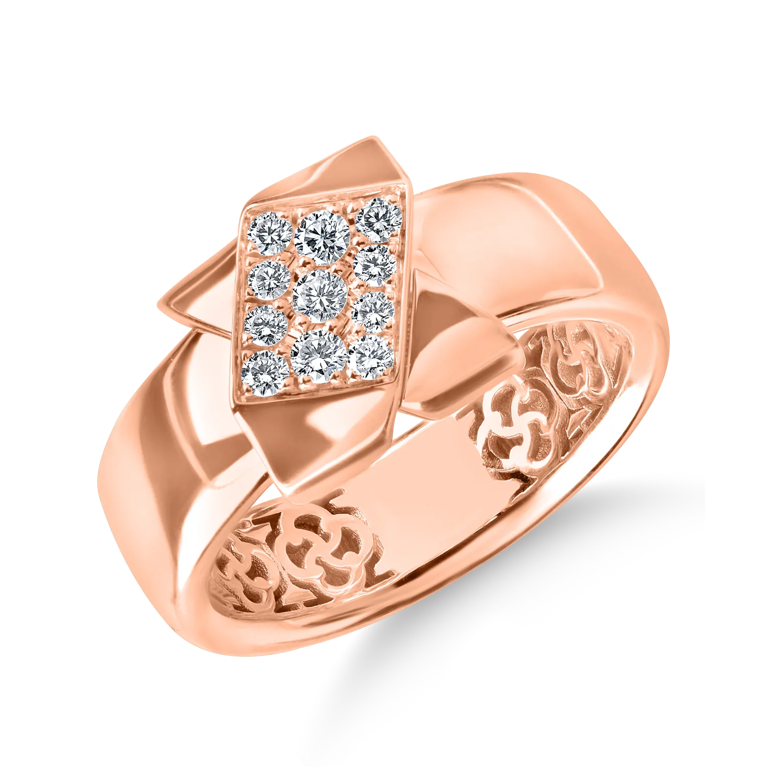 Exista bijuterii care te cuceresc de la prima vedere. Un inel geometric din aur roz cu diamante de 0.2ct creat din pasiune pentru accesoriile care te fac sa te simti speciala. O piesa care va sublinia unicitatea outfit-urilor tale.