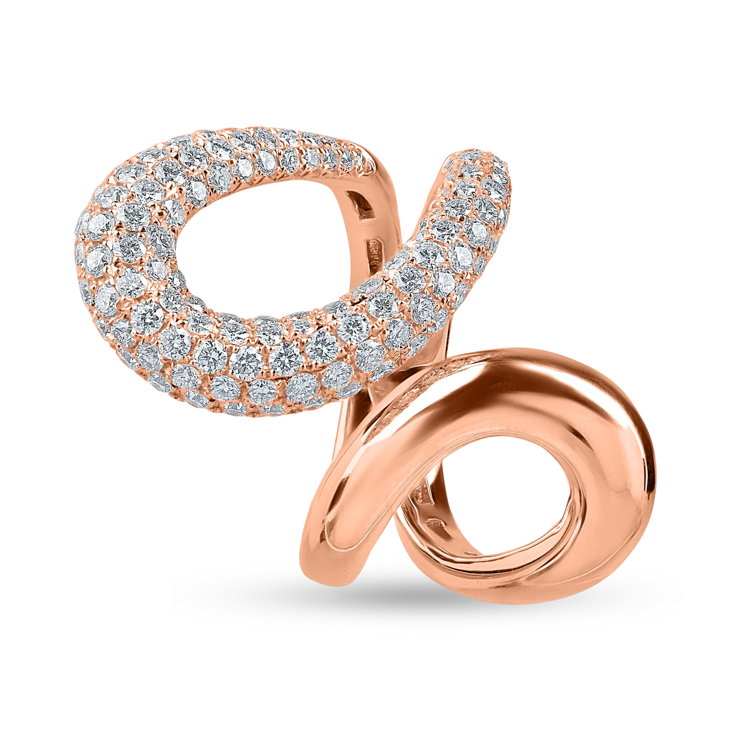 Feminitate si atitudine. Modern si rafinat, acest inel geometric din aur roz cu diamante de 1.5ct ofera tinutelor tale originalitate. Si te inspira sa te exprimi in mii de feluri. Alege piesele care ti se potrivesc perfect cu TEILOR.