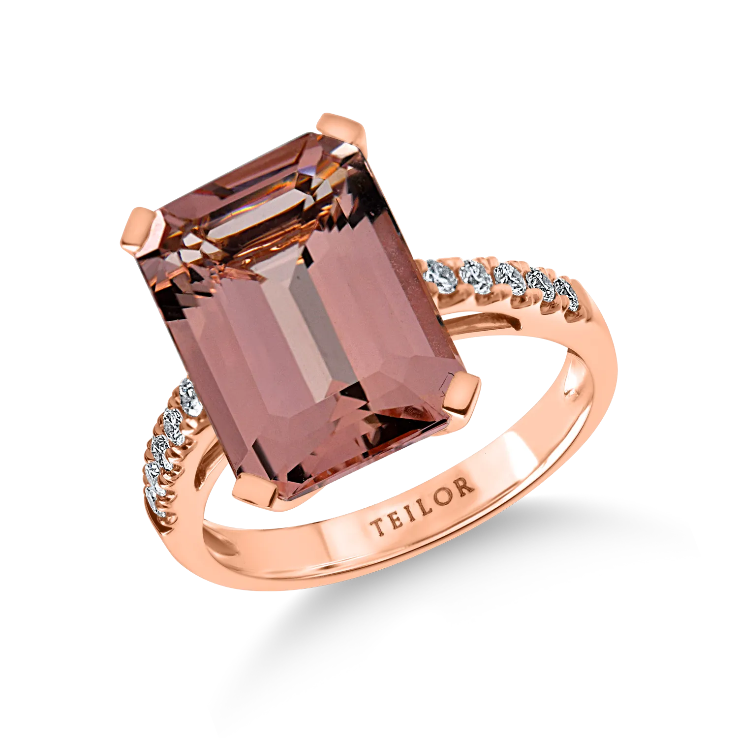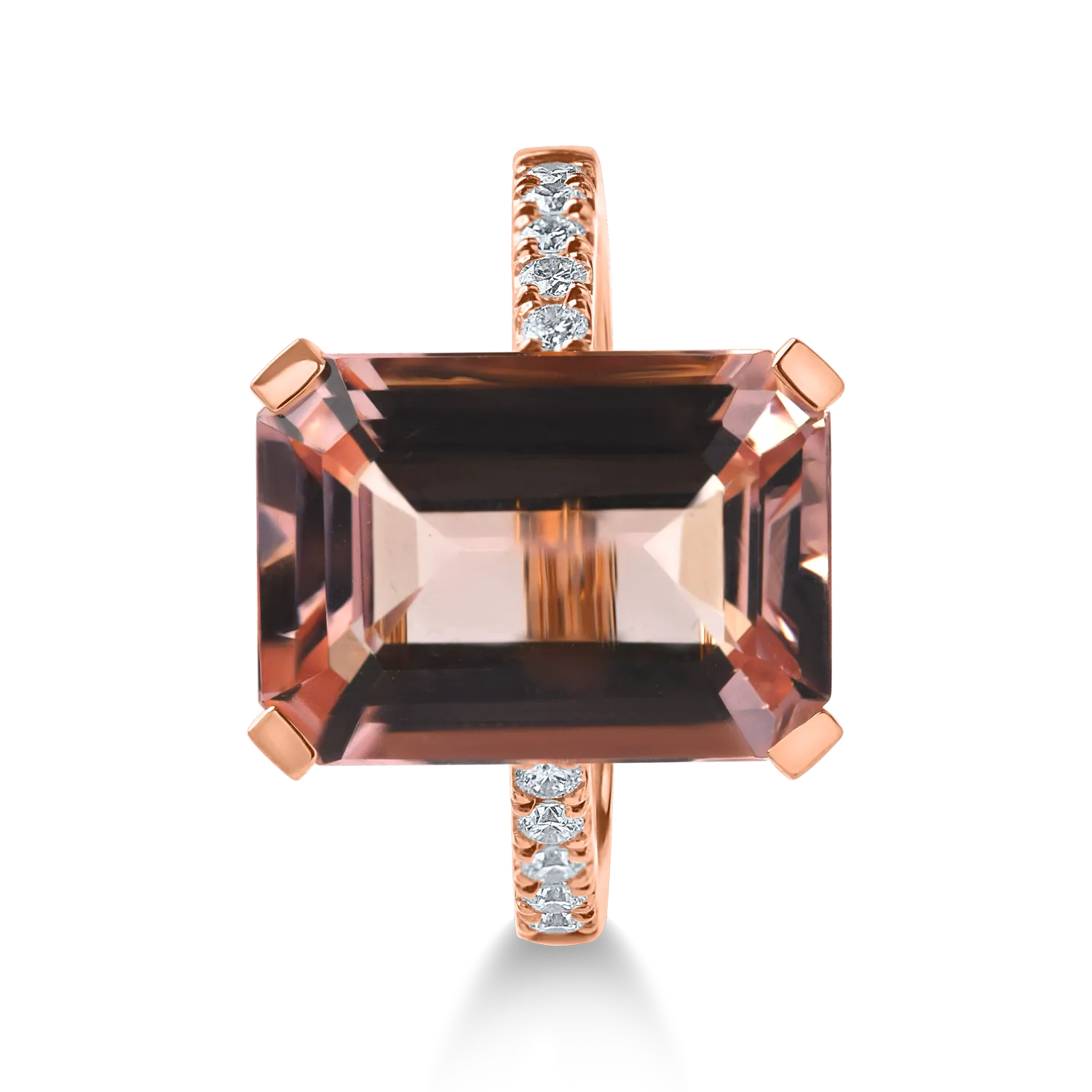 Inel geometric din aur roz cu morganit octogonal de 6.4ct si diamante de 0.2ct