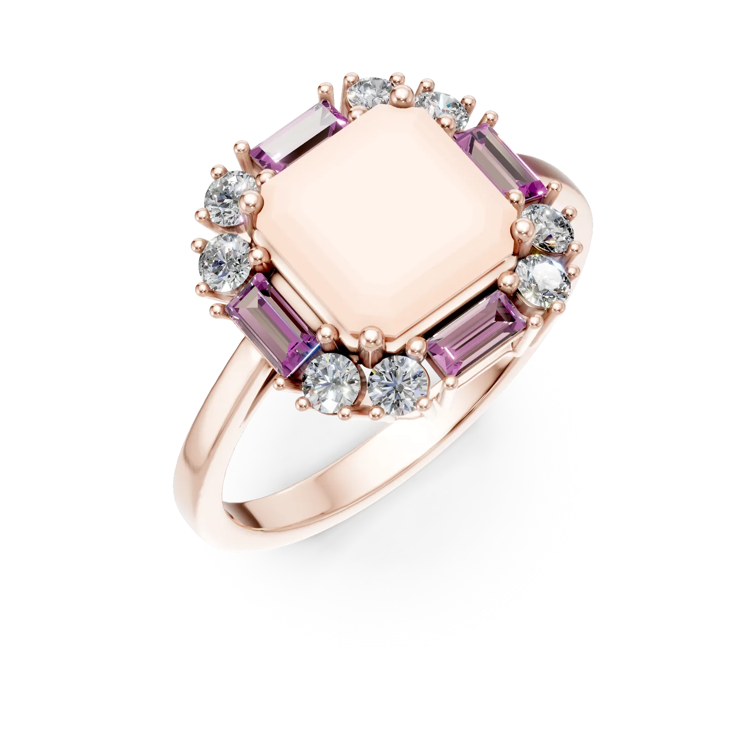 Inel geometric din aur roz cu pietre pretioase si semipretioase de 2.8ct