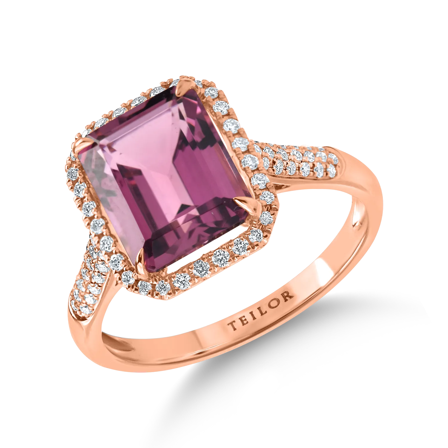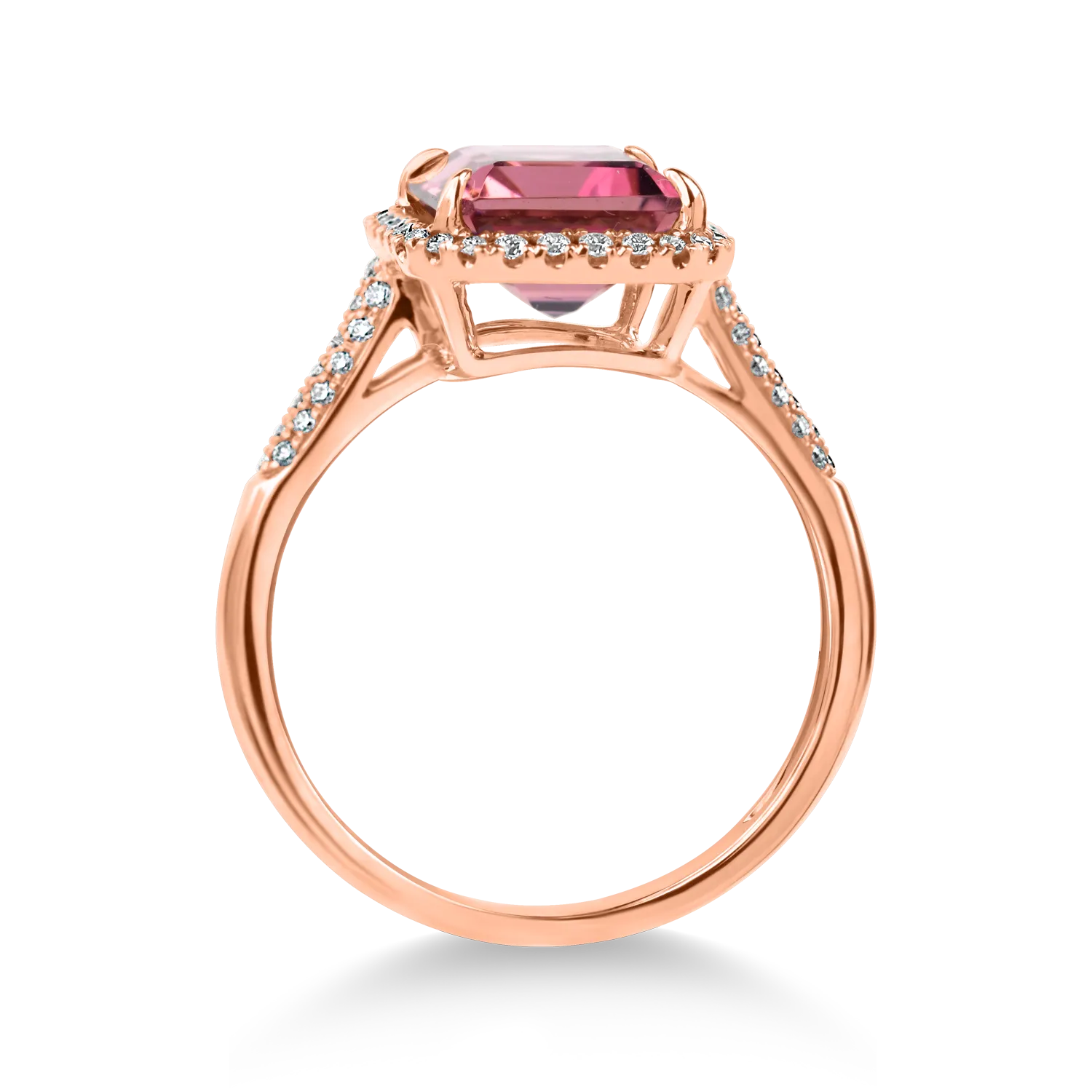 Inel geometric din aur roz cu turmalina roz octogonala de 3.1ct si diamante de 0.2ct