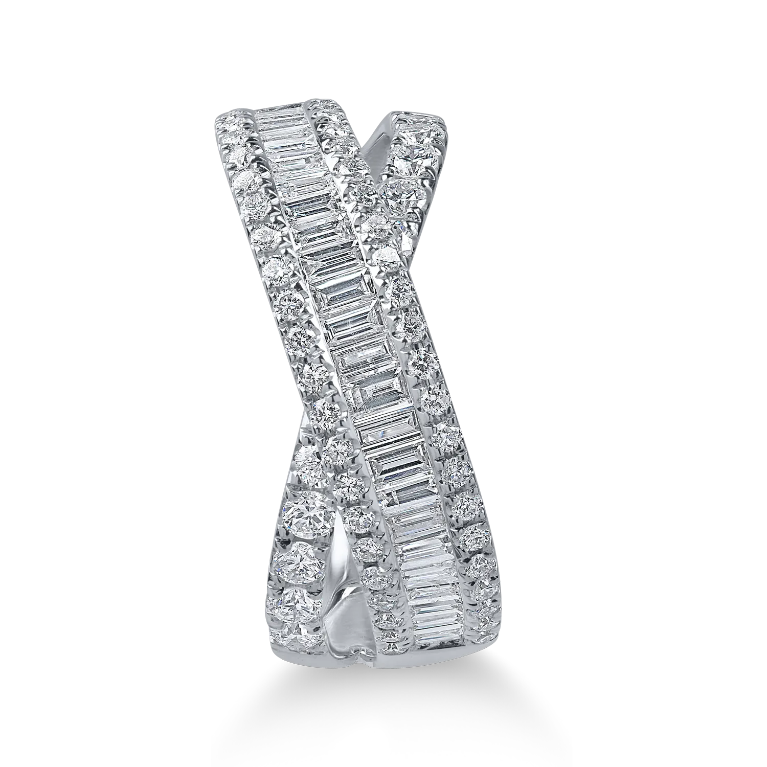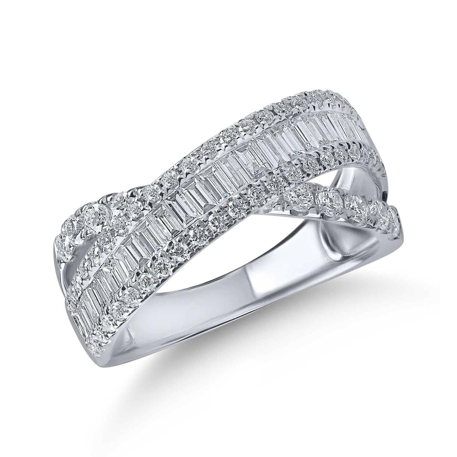 Inel impletit din aur alb cu diamante baguette si rotunde de 1.2ct