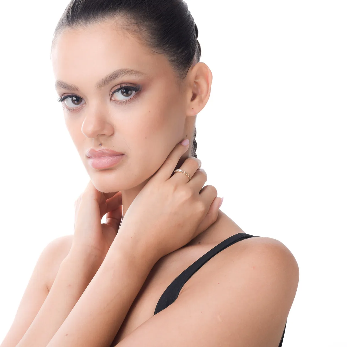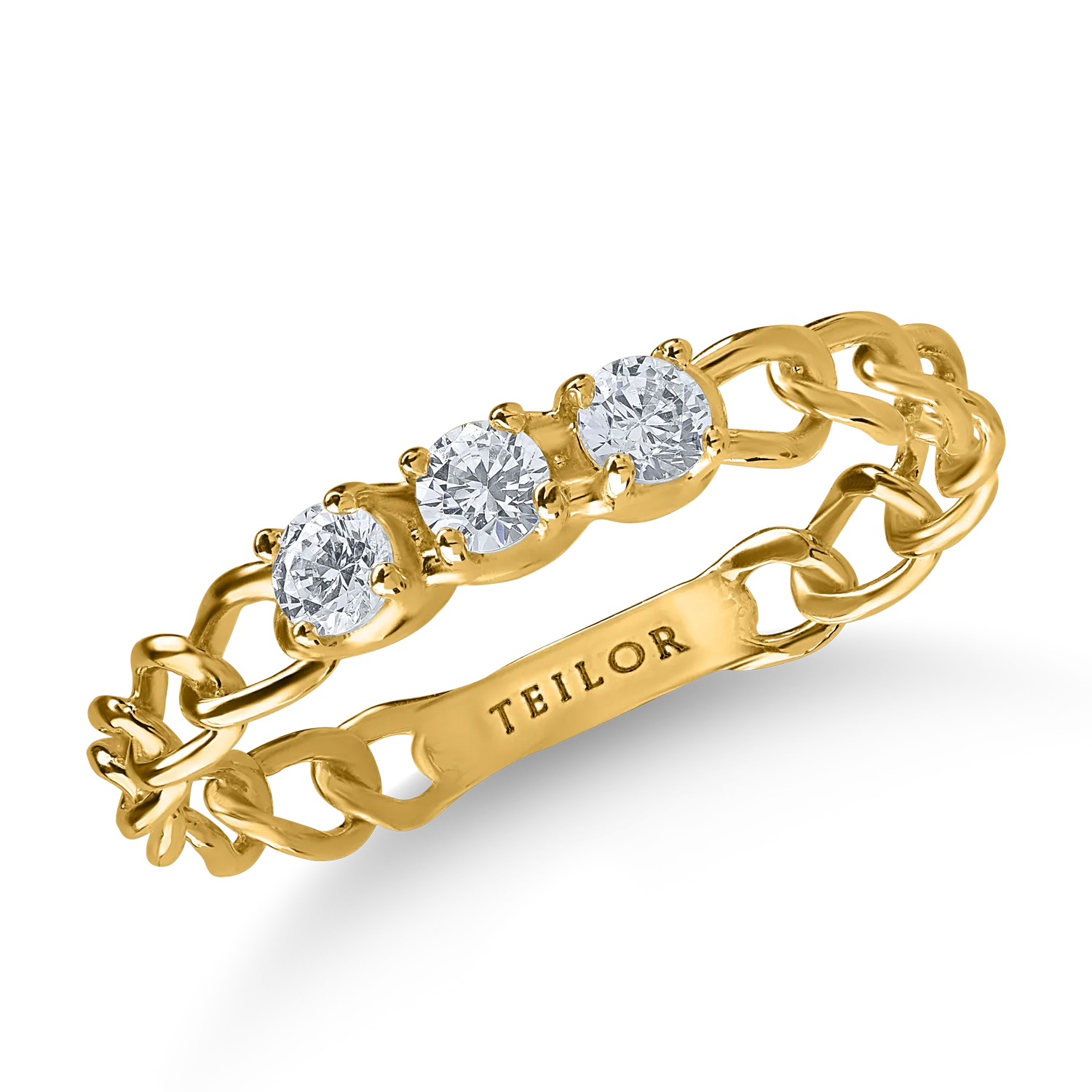 Feminitate si atitudine. Descopera un inel impletit din aur galben cu zirconii care se adapteaza atat tinutelor de zi cu zi, cat si celor mai elegante. Intra in lumea seducatoare TEILOR. O lume in care se regasesc cele care adora sa-si depaseasca limitele.