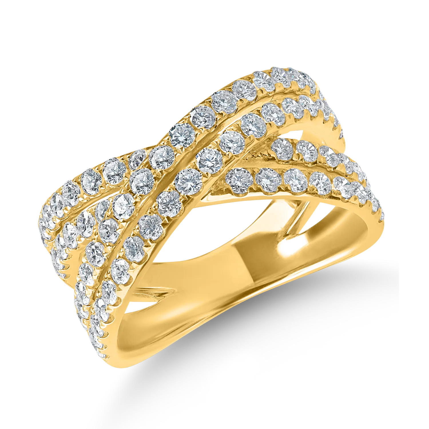Exista bijuterii care te cuceresc de la prima vedere. Originalitatea si rafinamentul se intalnesc in acest inel in X din aur galben cu diamante de 1.2ct, creat pentru a-ti accentua farmecul personal. O combinatie naturala a luxului, o piesa memorabila pentru femeile puternice.