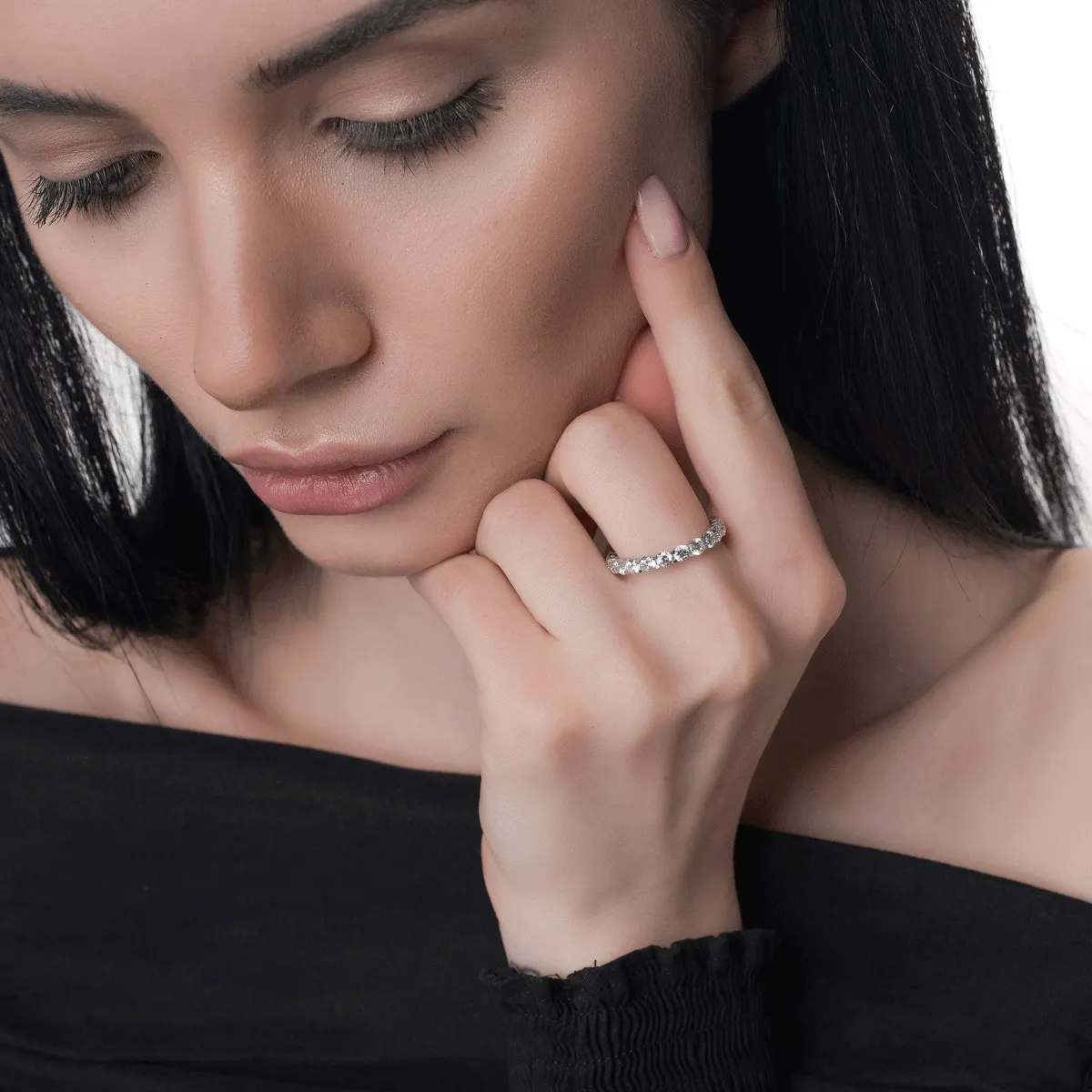 Feminitate si atitudine. Modern si rafinat, acest inel infinity din aur alb ofera tinutelor tale originalitate si te inspira sa te exprimi in mii de feluri. O combinatie naturala a luxului, o piesa memorabila pentru femeile puternice.
