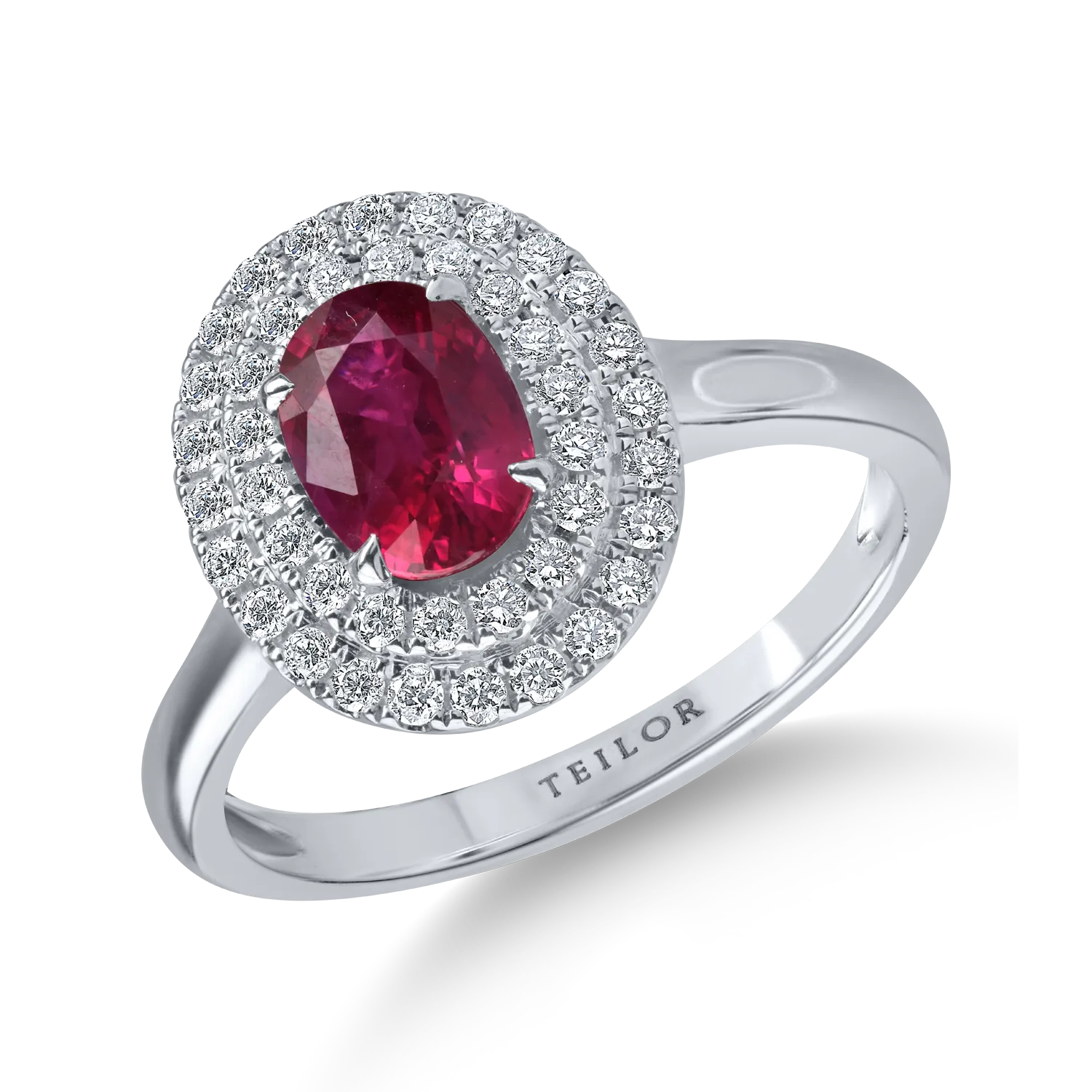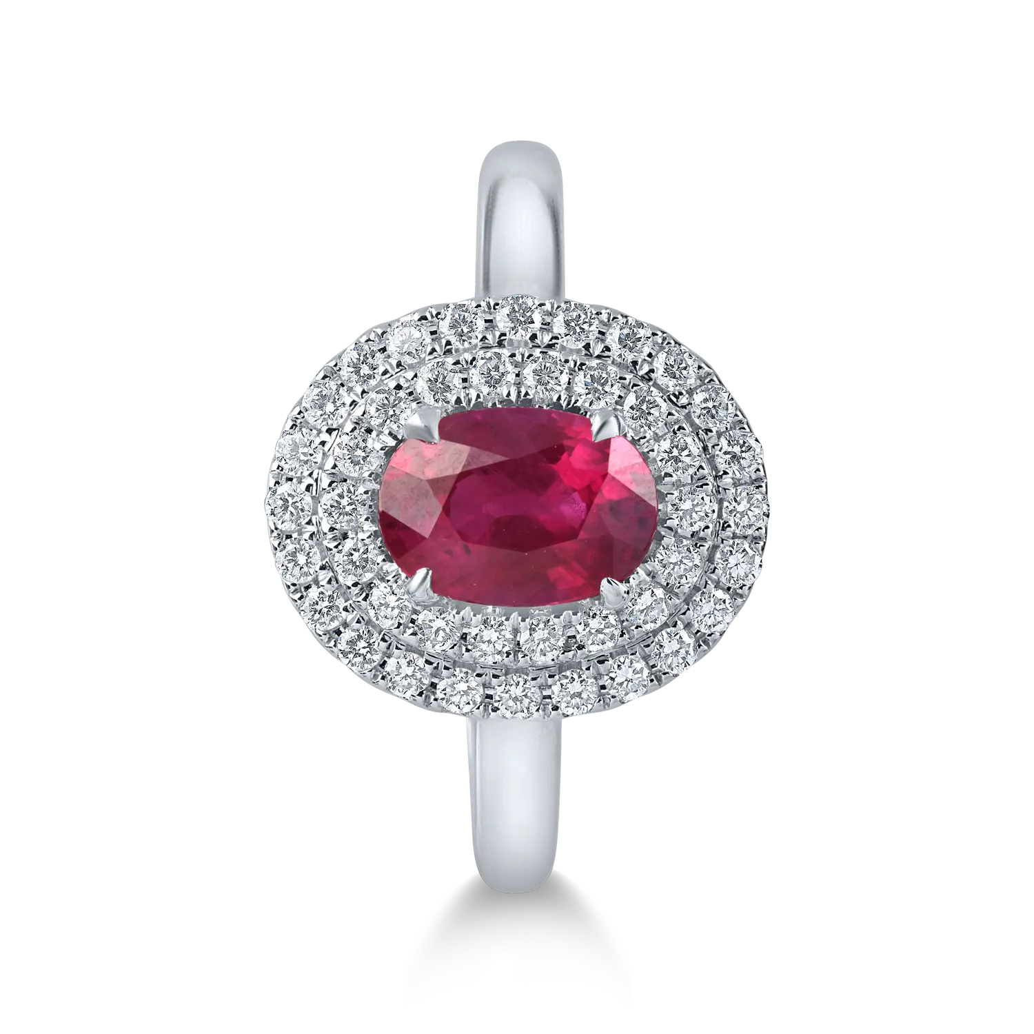 Inel oval din aur alb cu un rubin oval de 1ct si diamante de 0.2ct