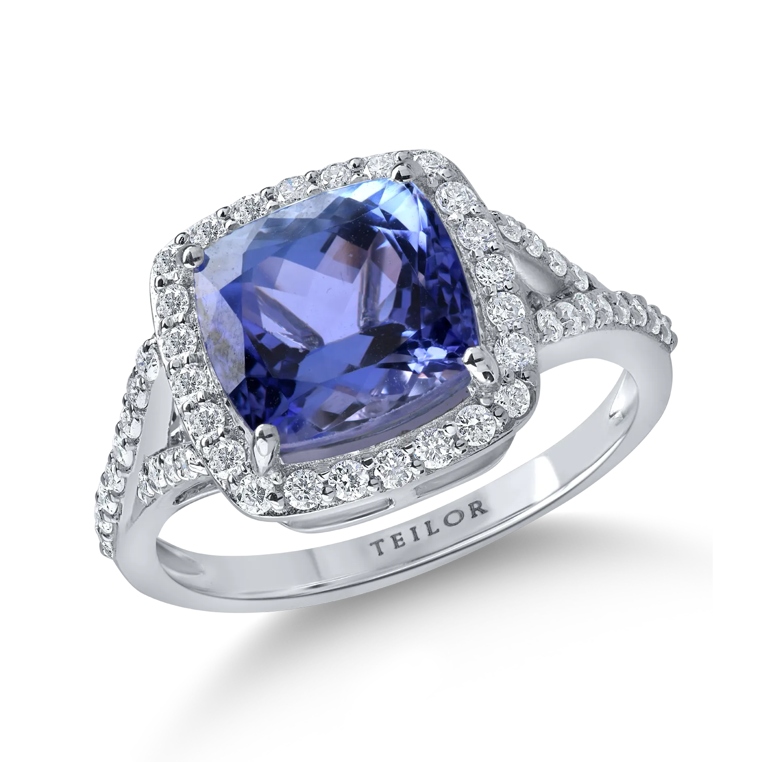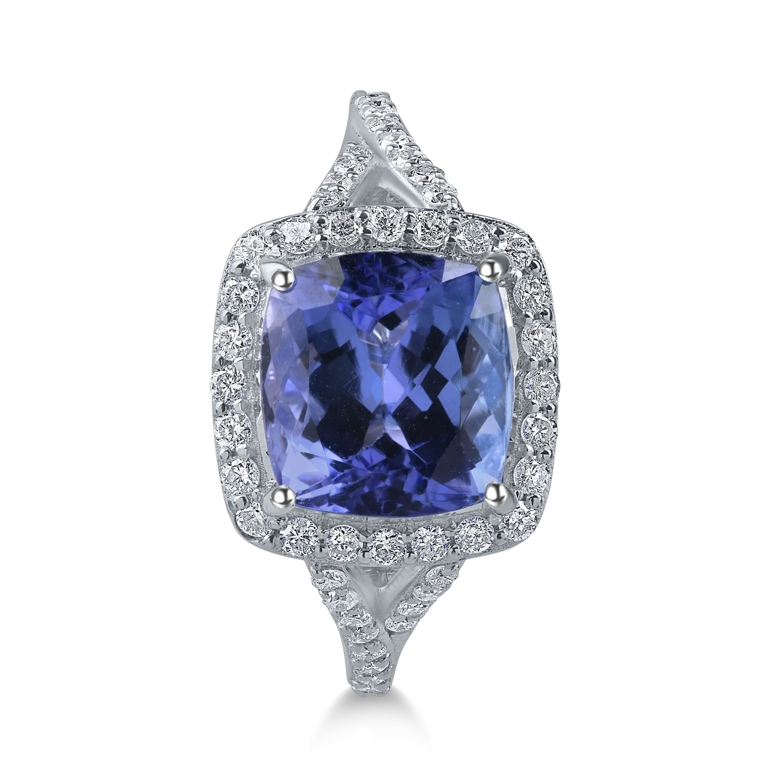 Inel patrat din aur alb cu tanzanit radiant de 3.9ct si diamante de 0.4ct