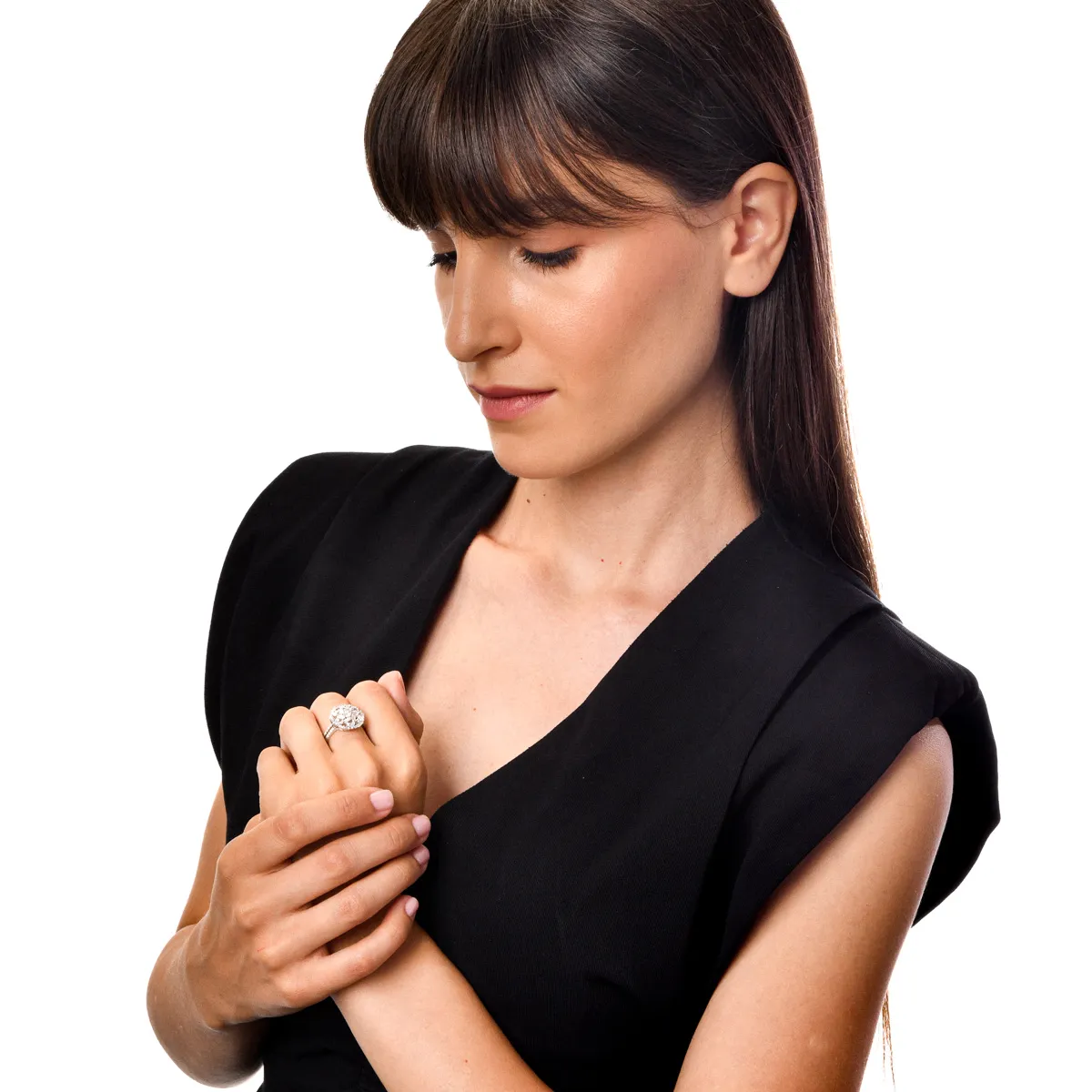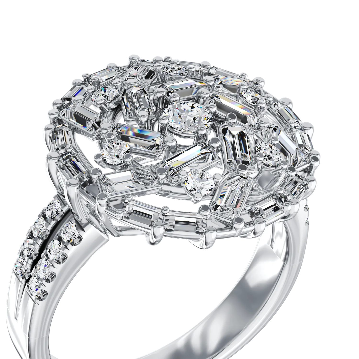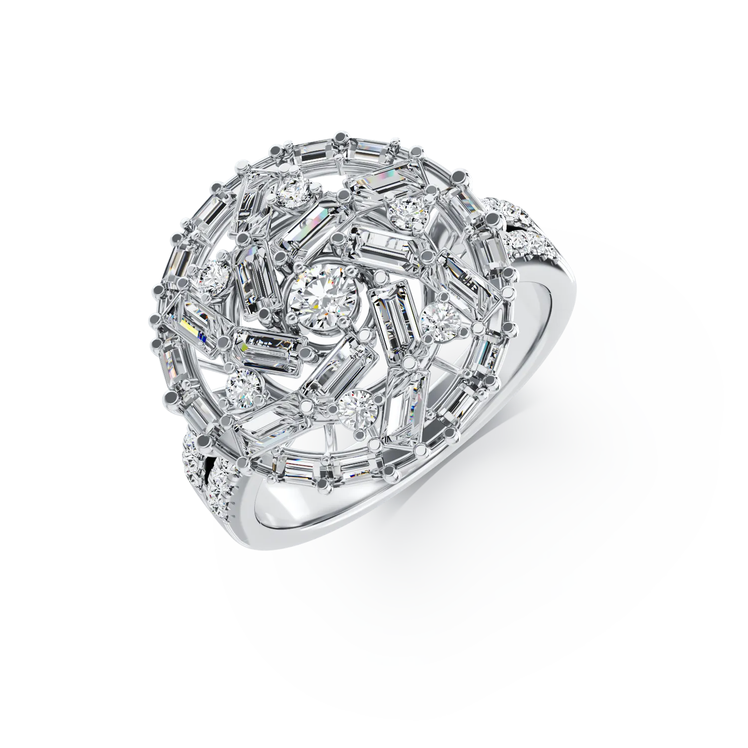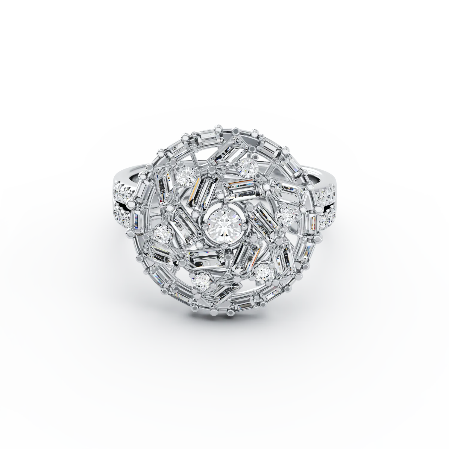 Inel rotund din aur alb cu diamante baguette si rotunde de 1.1ct