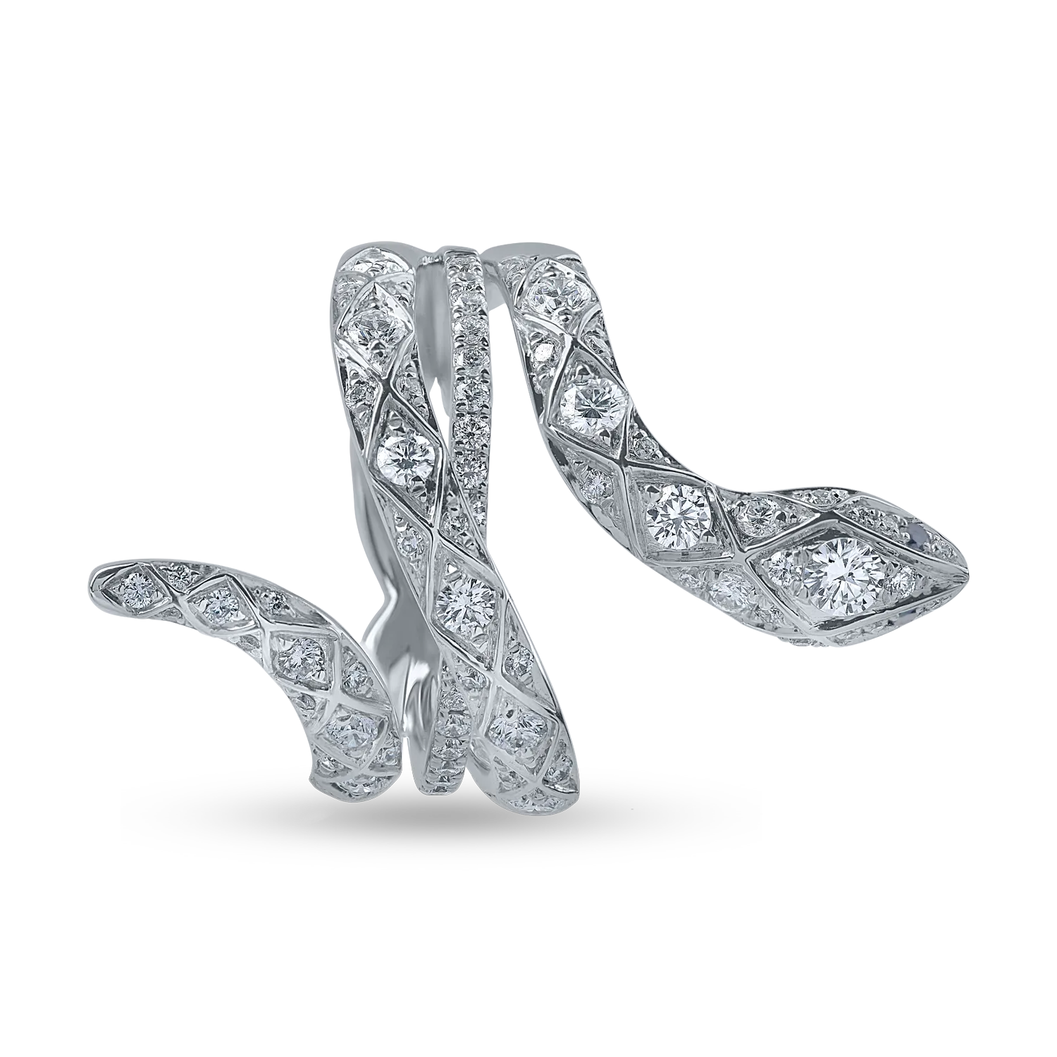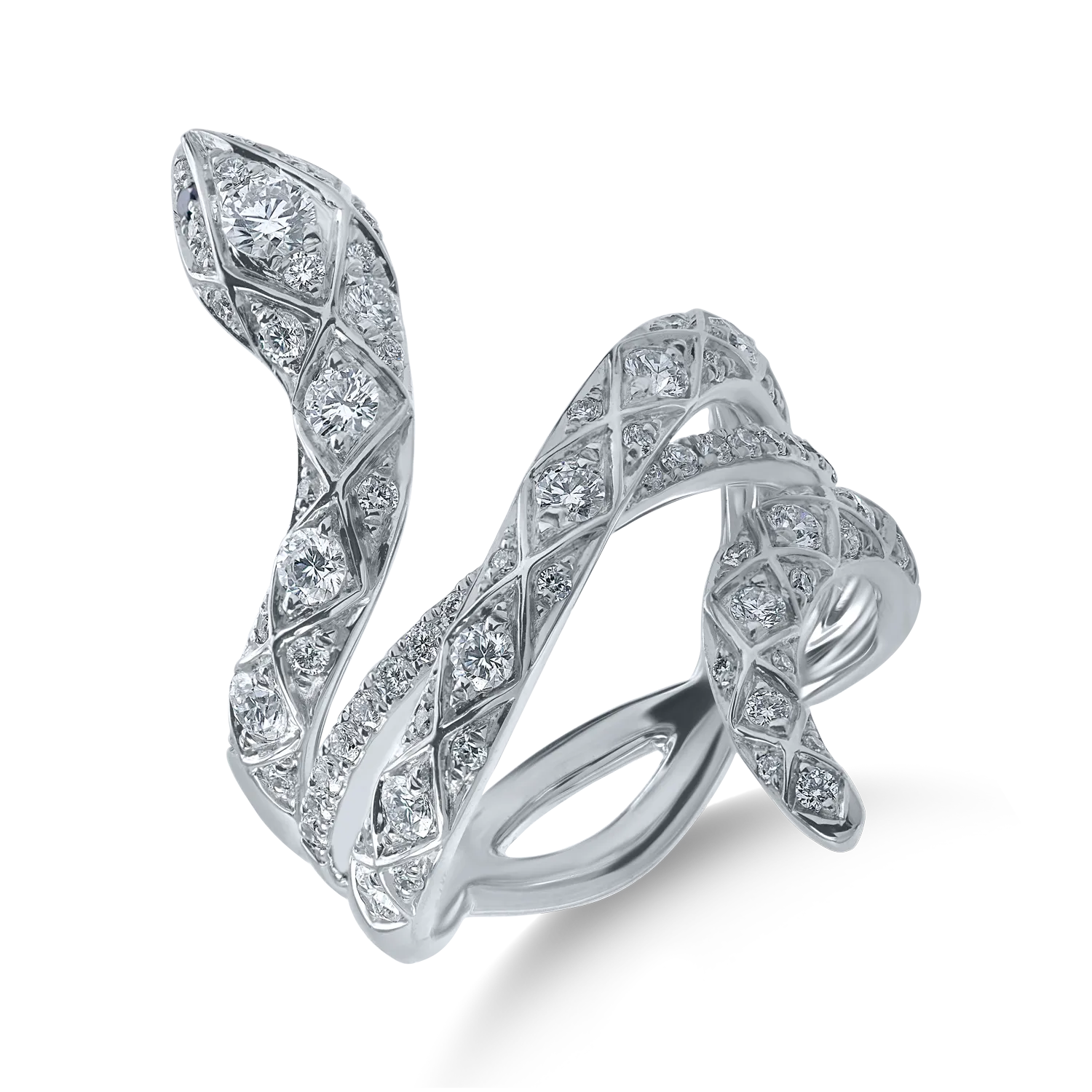 Inel sarpe din aur alb cu diamante transparente si negre de 1.06ct