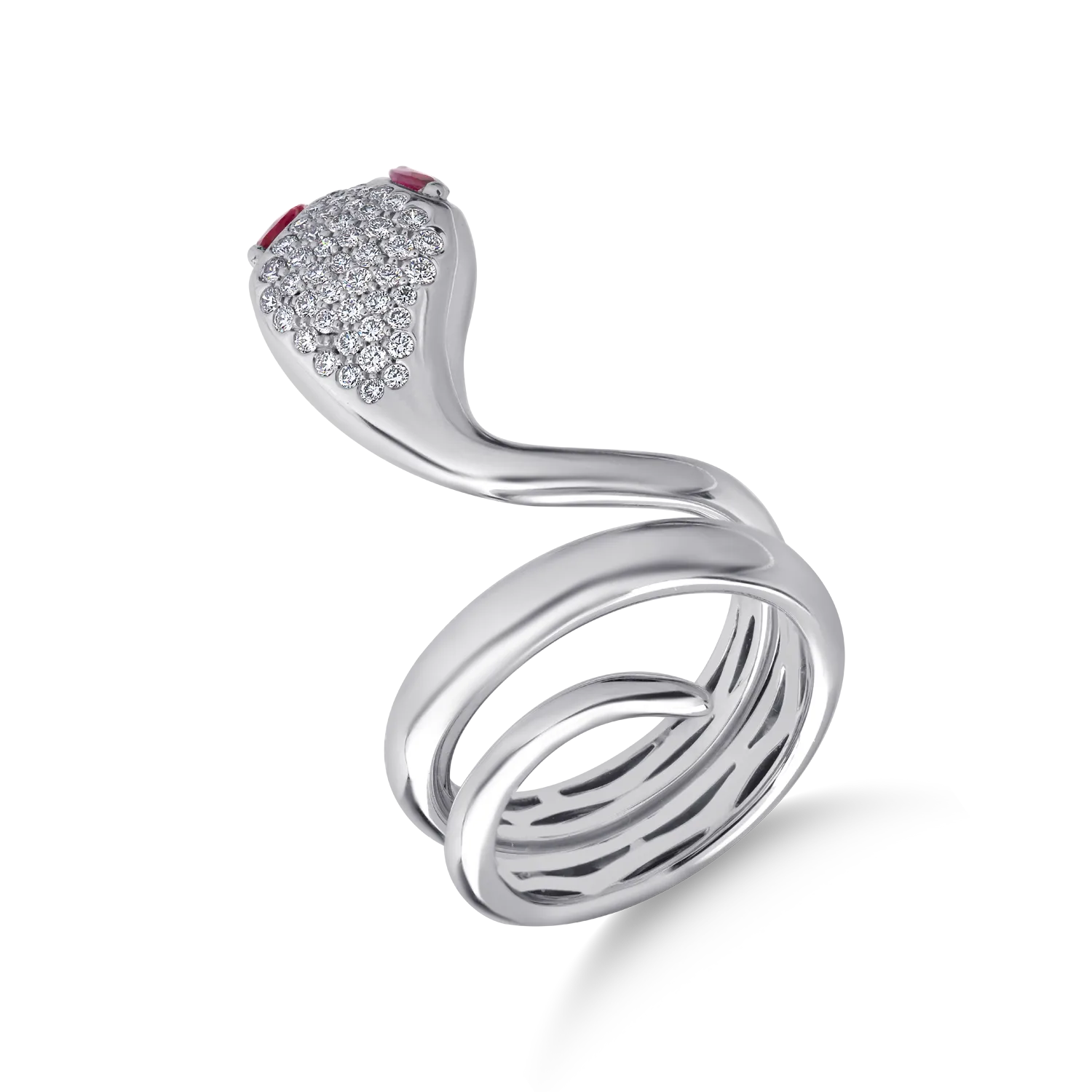 Inel sarpe din aur alb cu rubine marquise de 0.5ct si diamante de 0.5ct