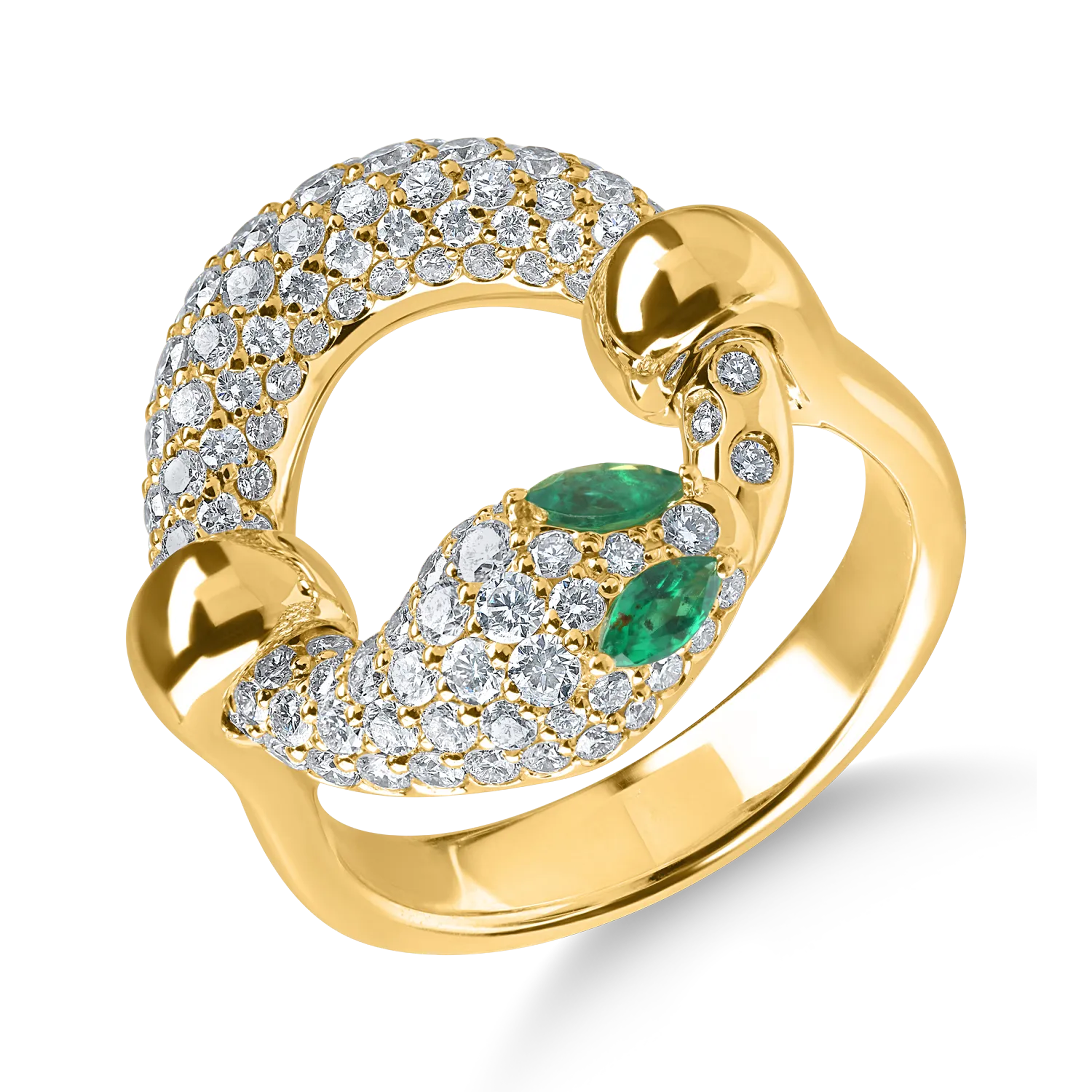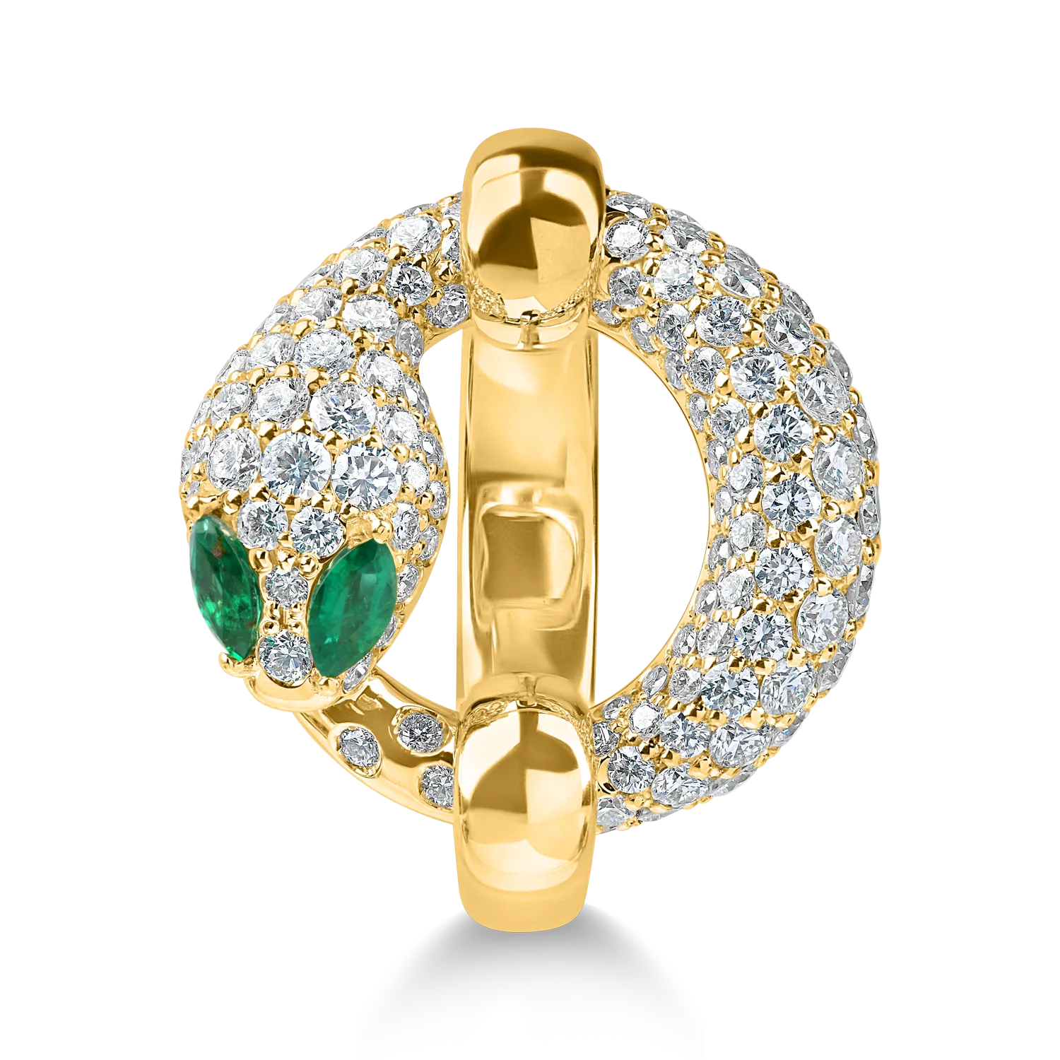 Inel sarpe din aur galben cu smaralde marquise de 0.1ct si diamante de 1.3ct