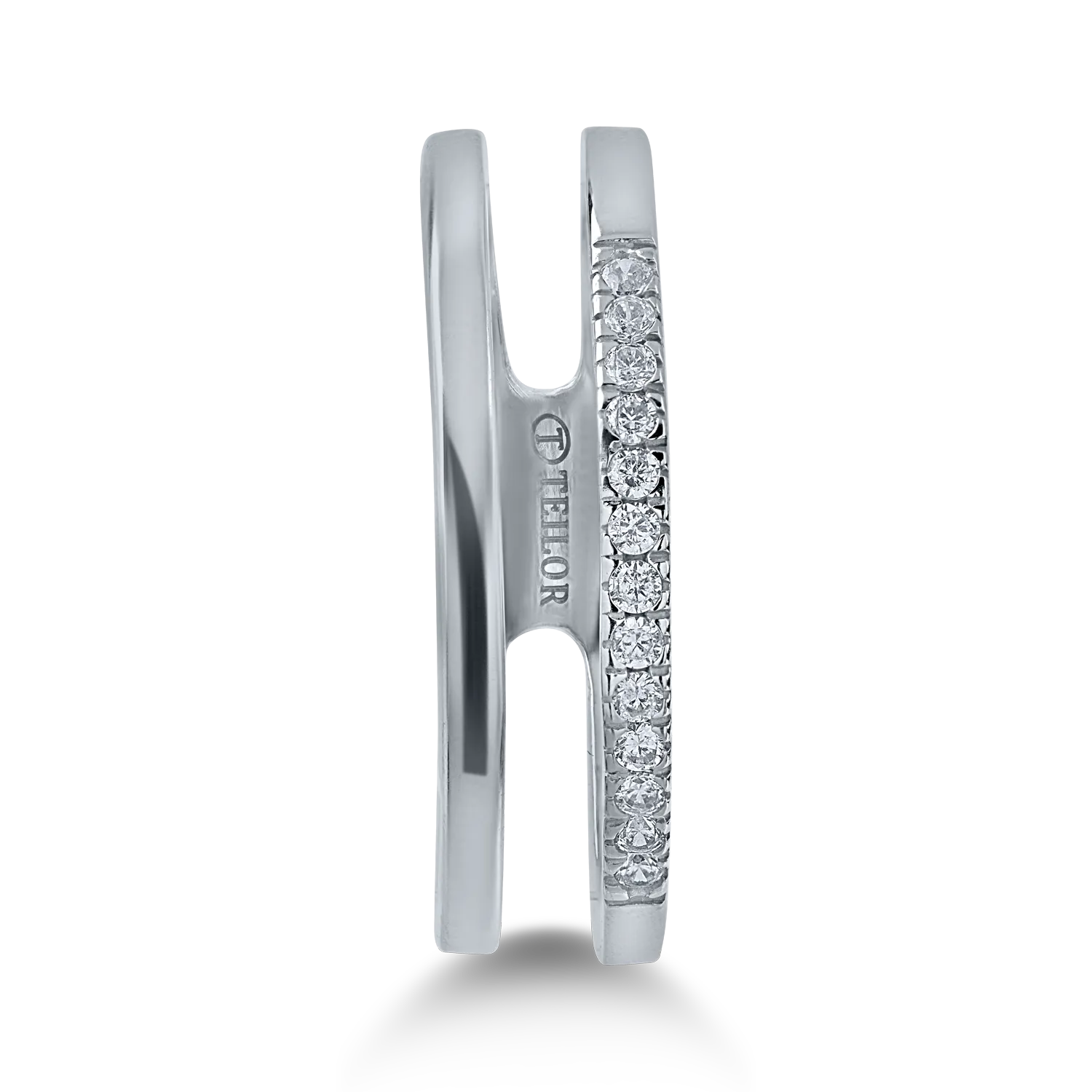 Poarta cu incredere bijuteriile preferate si dezvaluie noi fatete ale feminitatii tale. Un inel semi eternity din aur alb in care se reflecta dragostea pentru eleganta si rafinament. Alege piesele care ti se potrivesc perfect cu TEILOR.