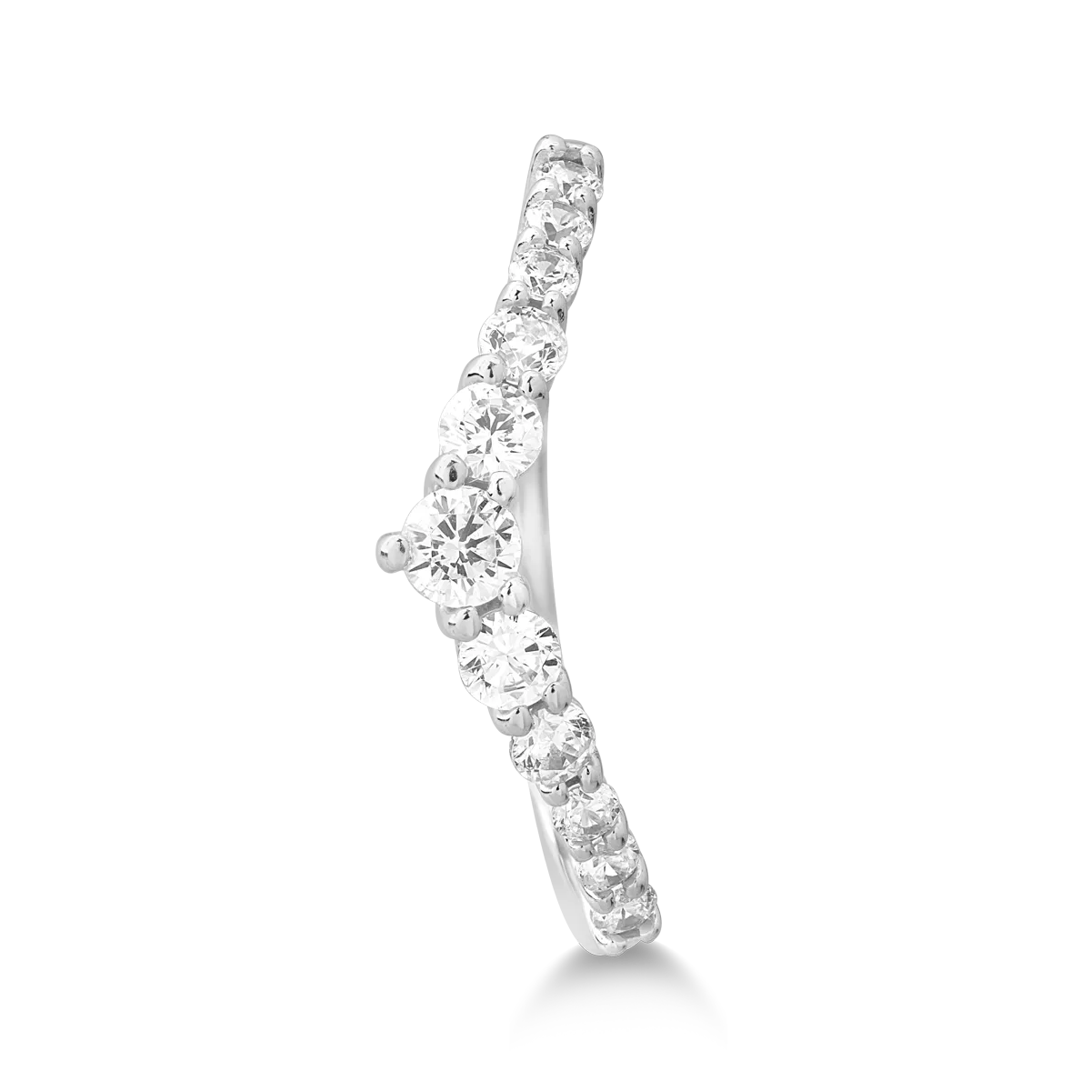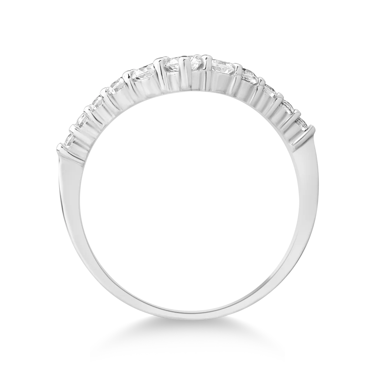 Feminitate si atitudine. Un inel semi eternity din aur alb creat din pasiune pentru accesoriile care te fac sa te simti speciala. Lasa-te purtata de imaginatie si exploreaza universul unic al TEILOR.