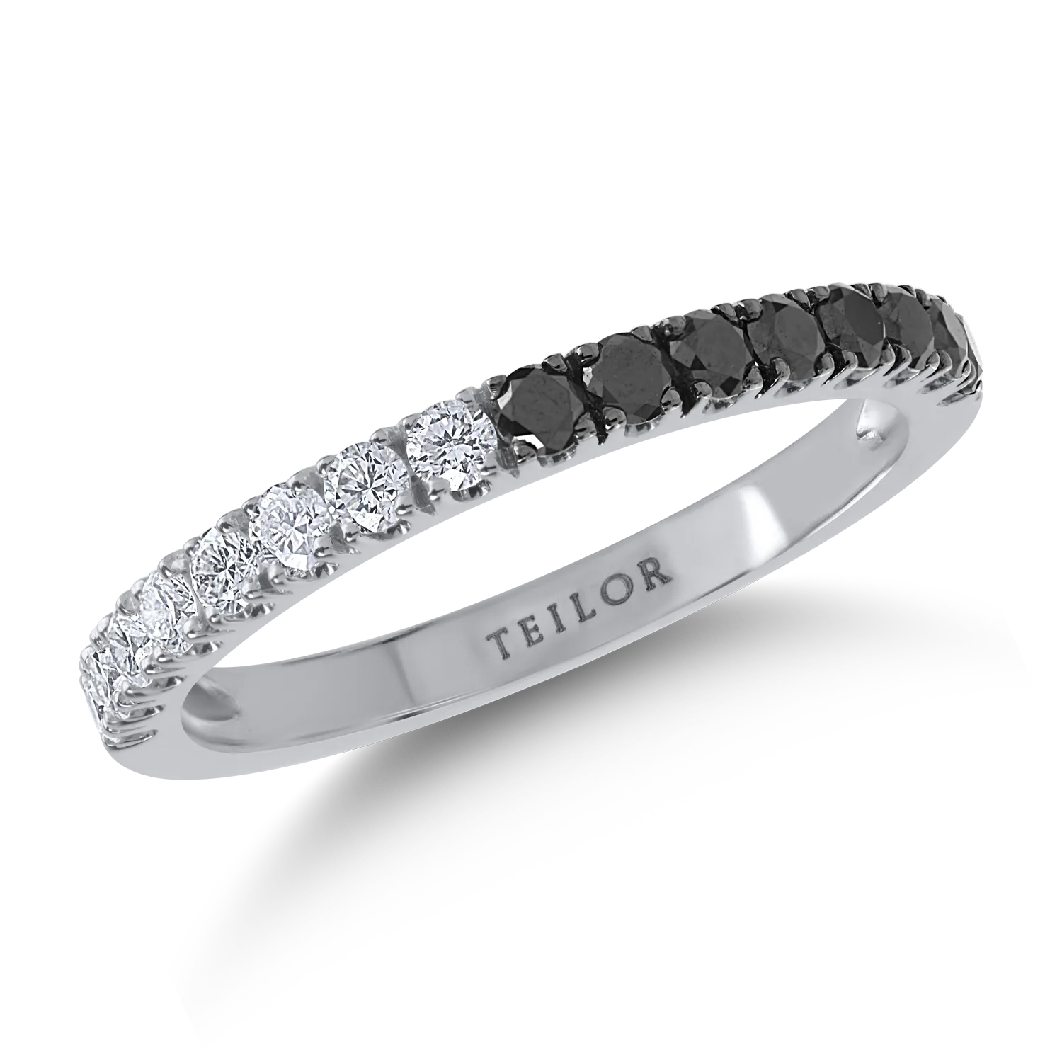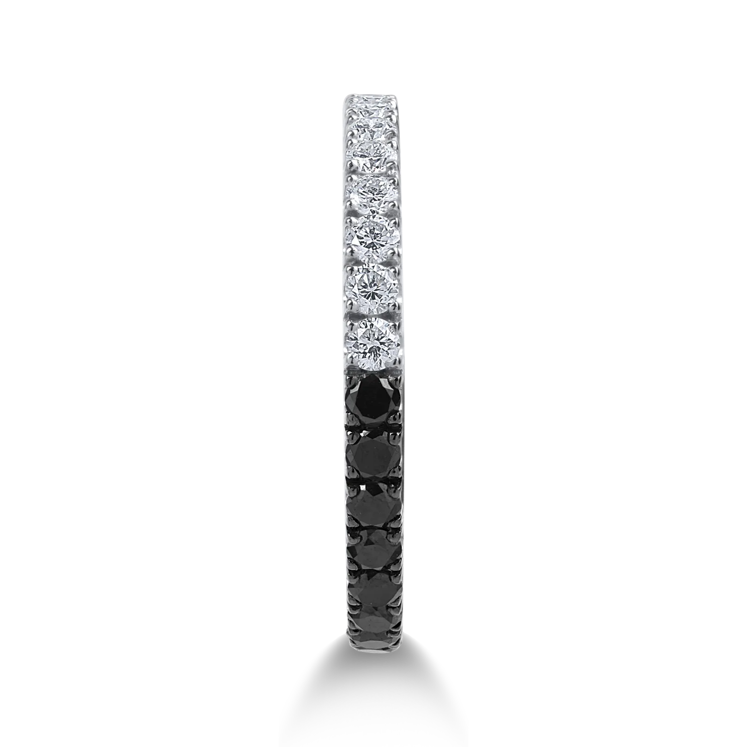 Inel semi eternity din aur alb cu diamante incolore si negre de 0.6ct