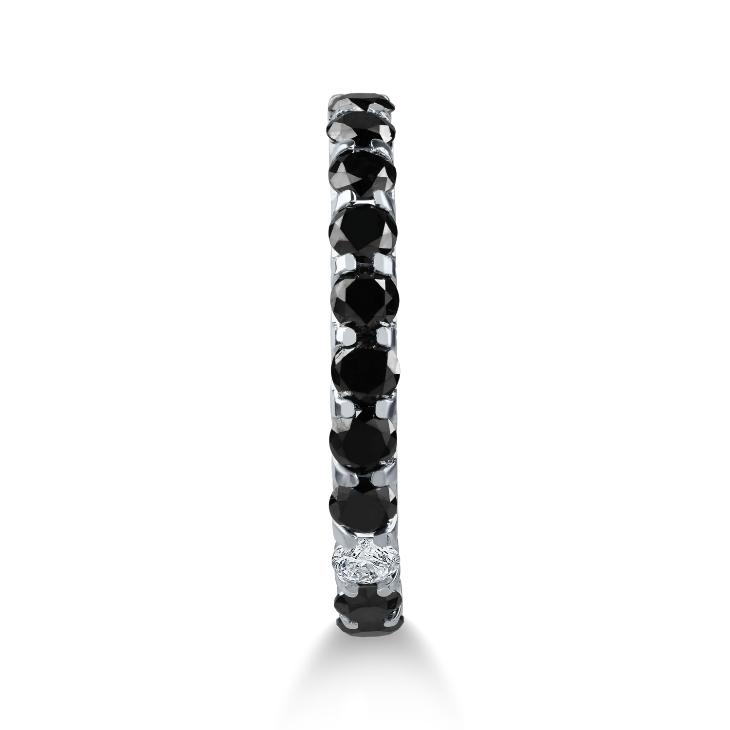 Inel semi eternity din aur alb cu diamante negre si incolore de 0.97ct