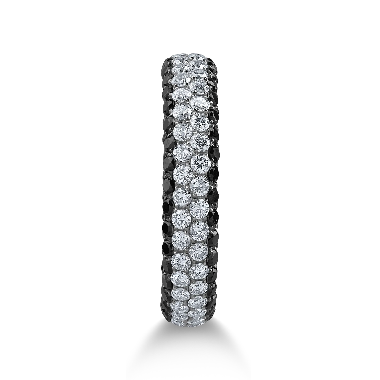 Inel semi eternity din aur alb cu diamante transparente de 0.74ct si diamante negre de 0.94ct