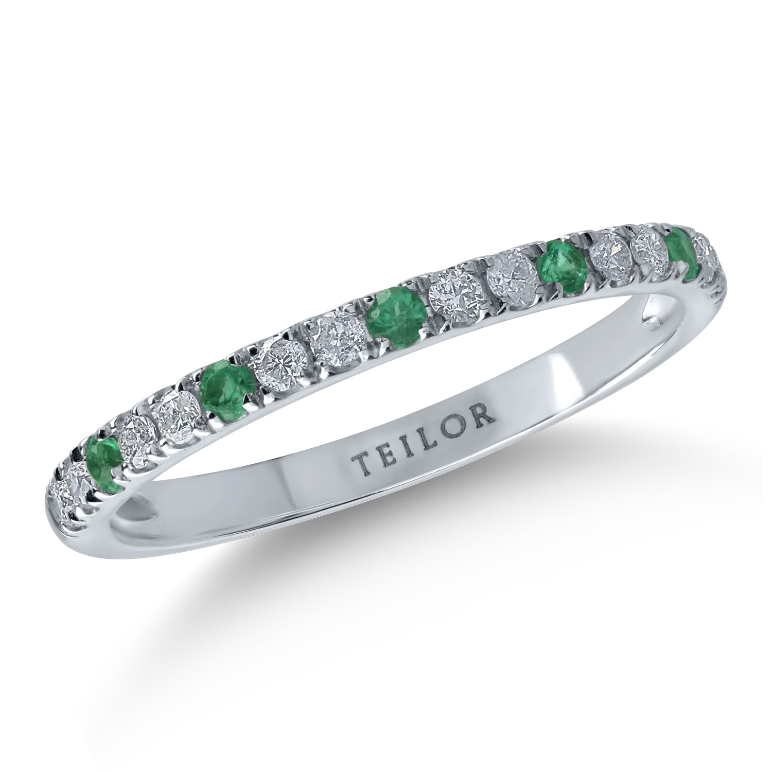 Inel semi eternity din aur alb cu smaralde de 0.07ct si diamante de 0.16ct