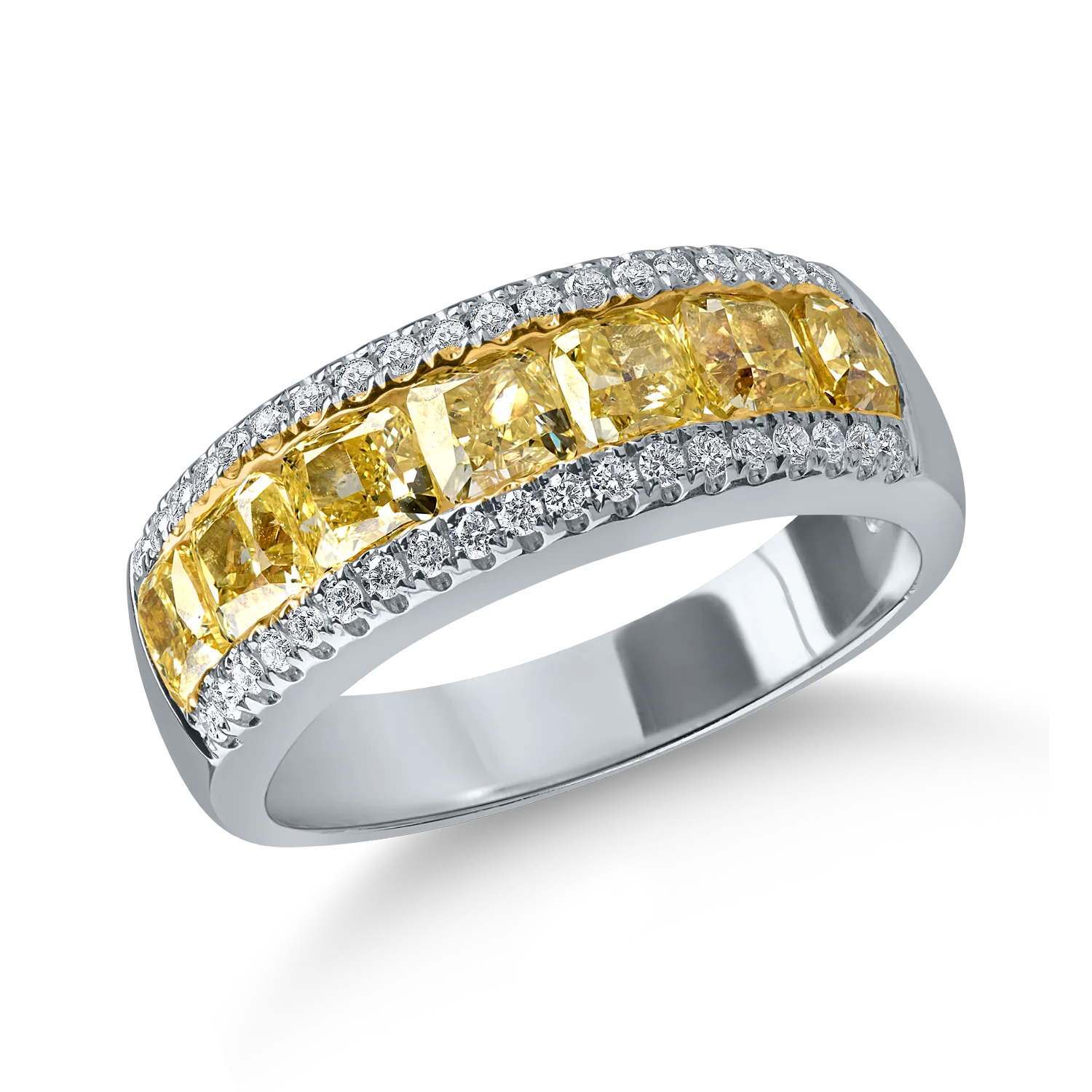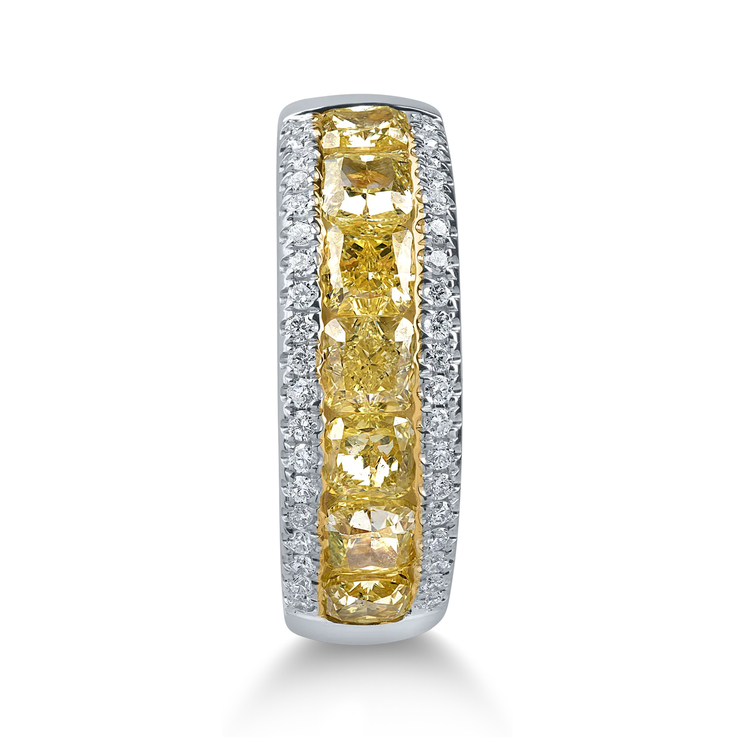 Inel semi eternity din aur alb galben cu diamante galbene cushion de 2ct si diamante de 0.2ct