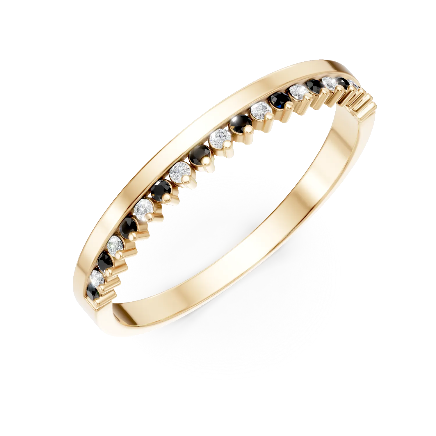 Feminitate si atitudine. Originalitatea si rafinamentul se intalnesc in acest inel semi eternity din aur galben creat pentru a-ti accentua farmecul personal. Alege piesele care confera expresivitate personalitatii tale.