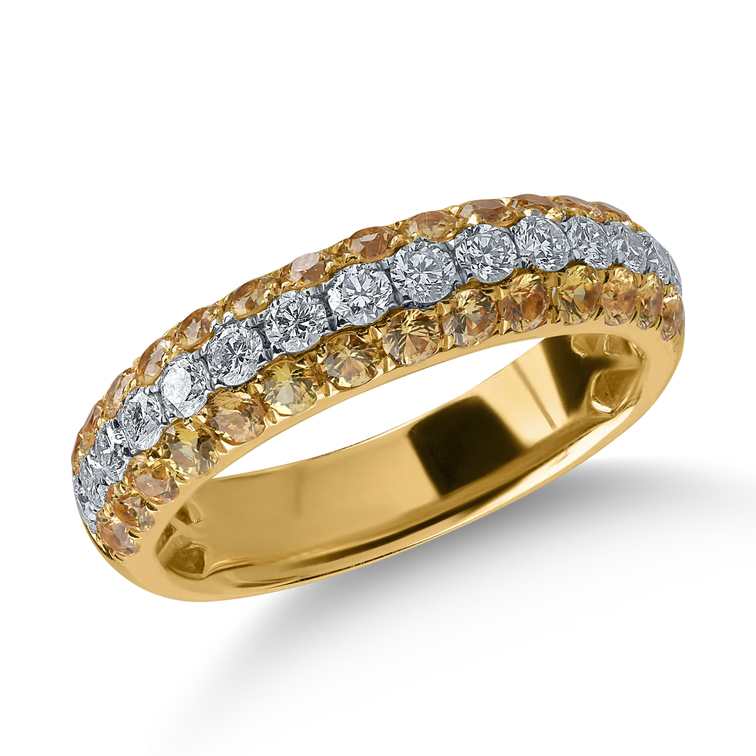 Inel semi eternity din aur galben cu safire galbene de 0.88ct si diamante de 0.49ct
