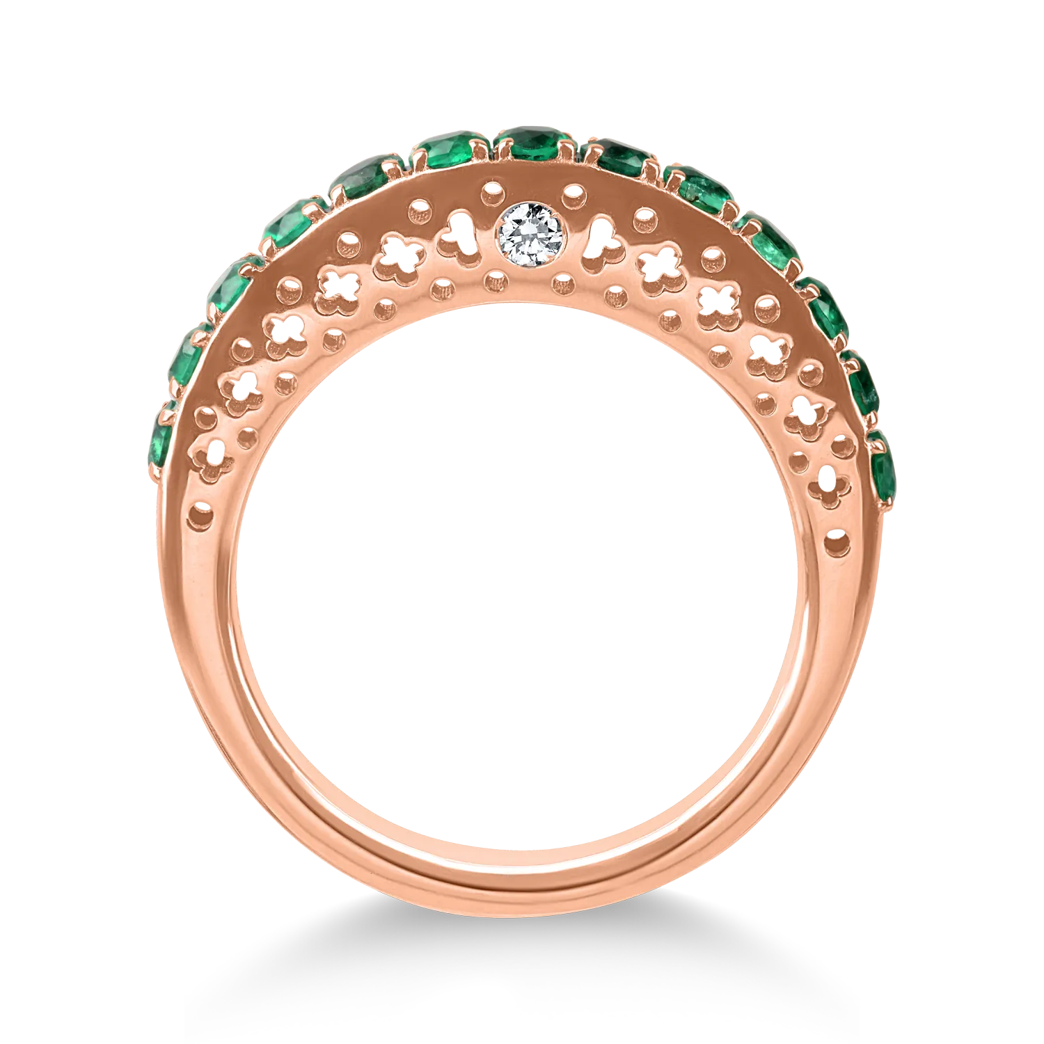 Inel semi eternity din aur roz cu smaralde de 0.7ct si diamante de 0.05ct