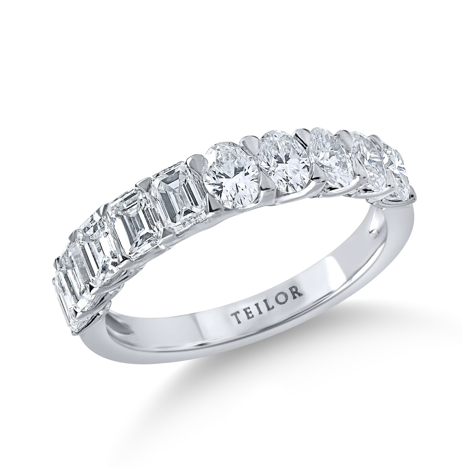 Inel semieternity din aur alb cu diamante emerald si ovale de 1.6ct