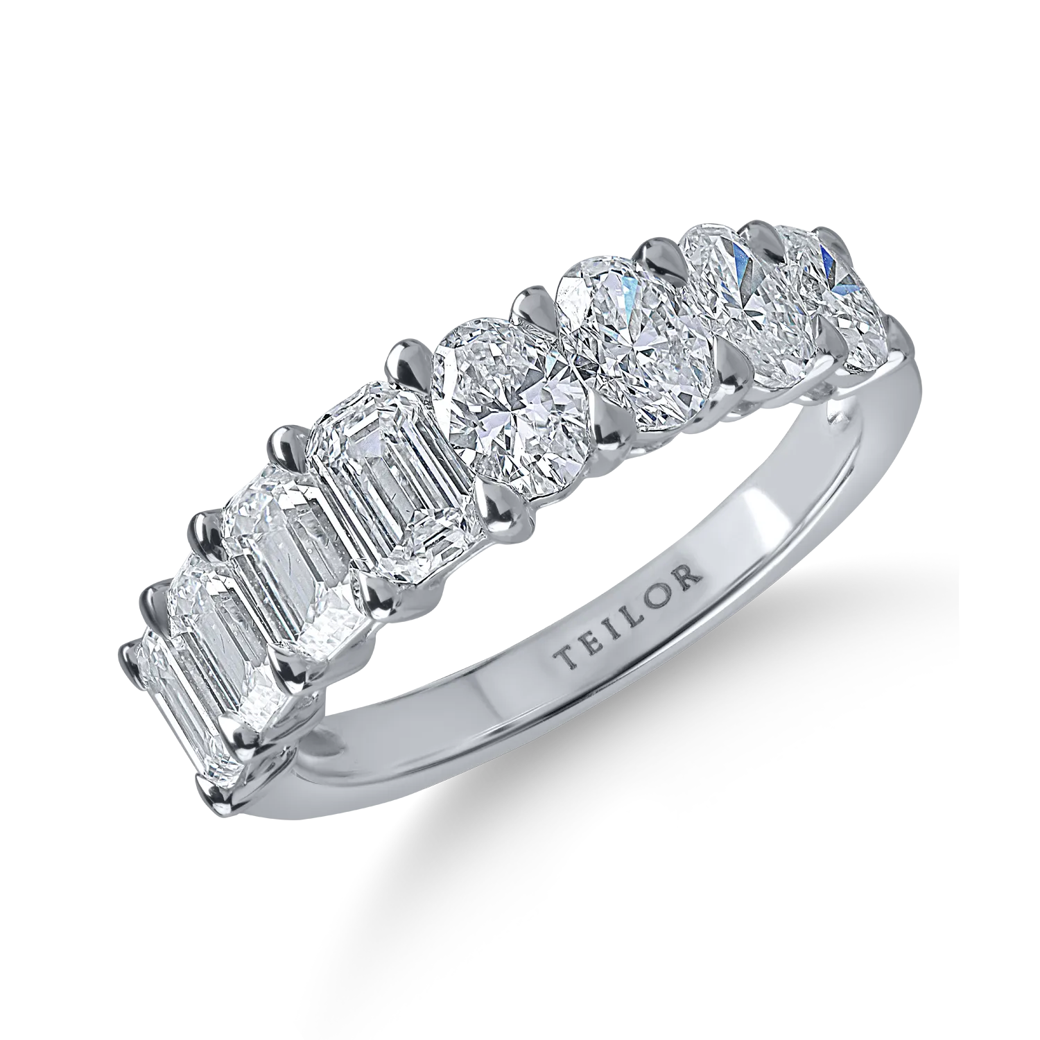 Inel semieternity din aur alb cu diamante emerald si ovale de 2.2ct