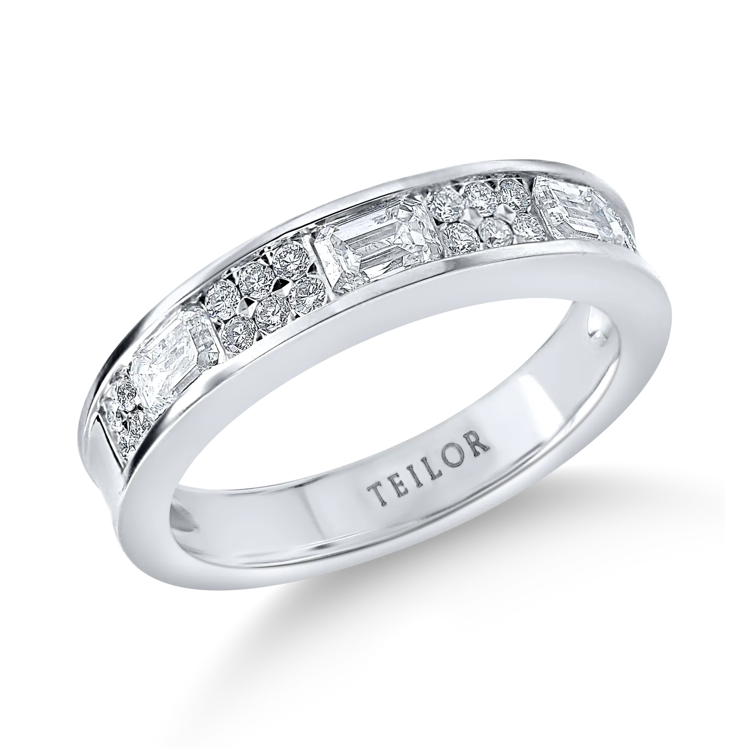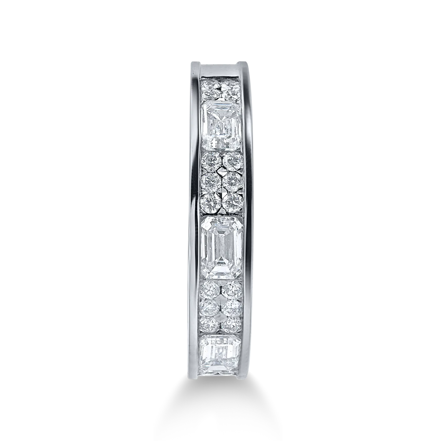 Inel semieternity din aur alb cu diamante emerald si rotunde de 0.8ct