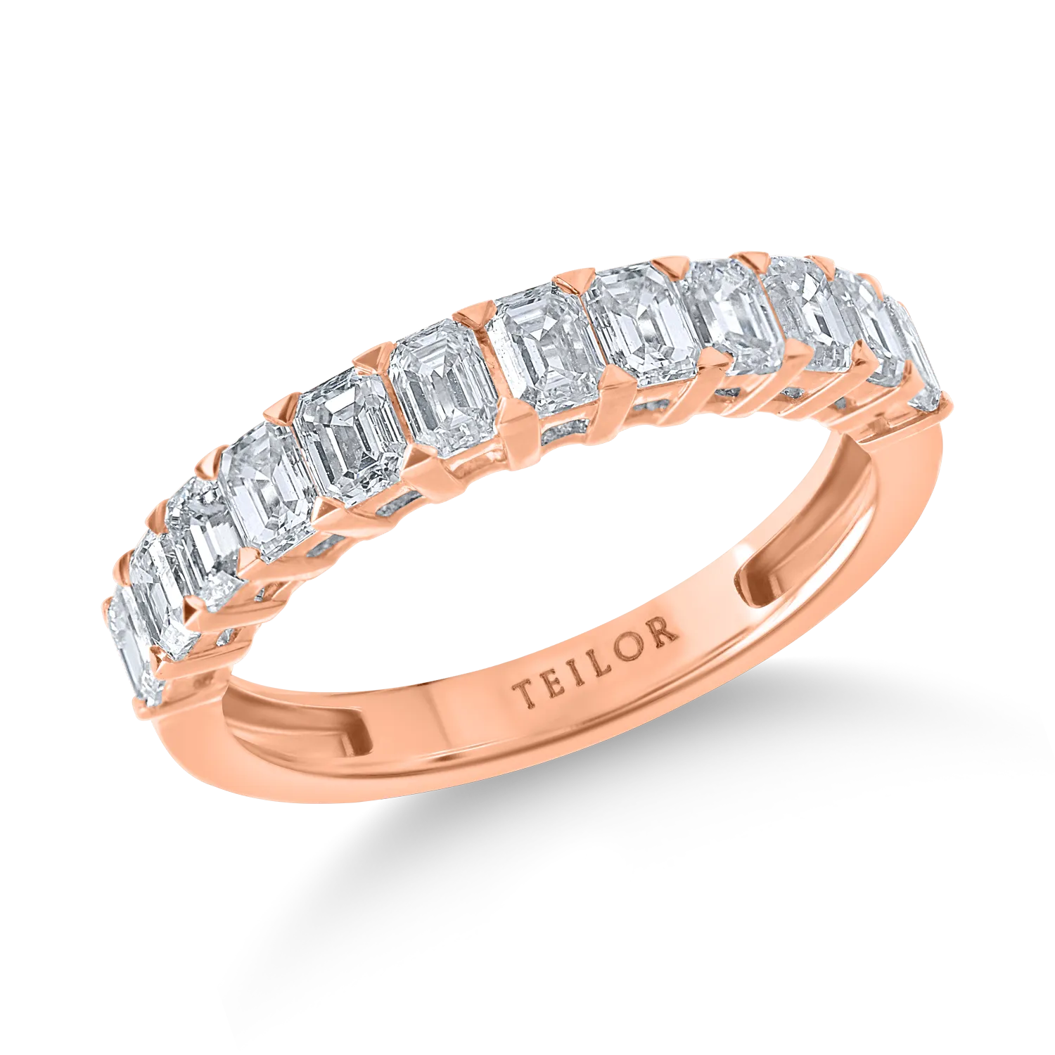 Inel semieternity din aur roz cu diamante emerald de 1.5ct